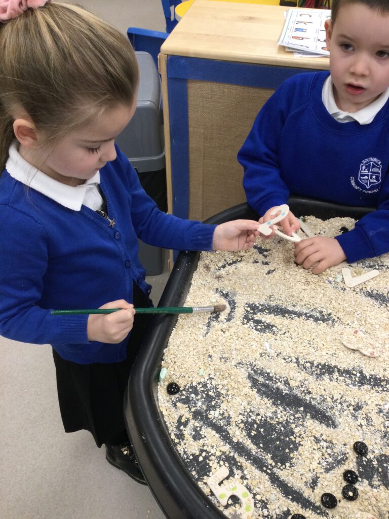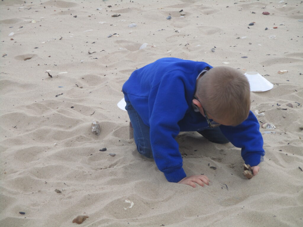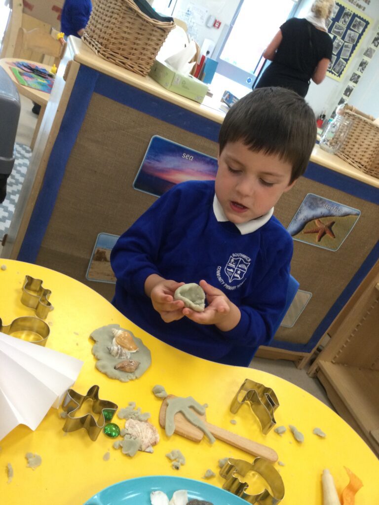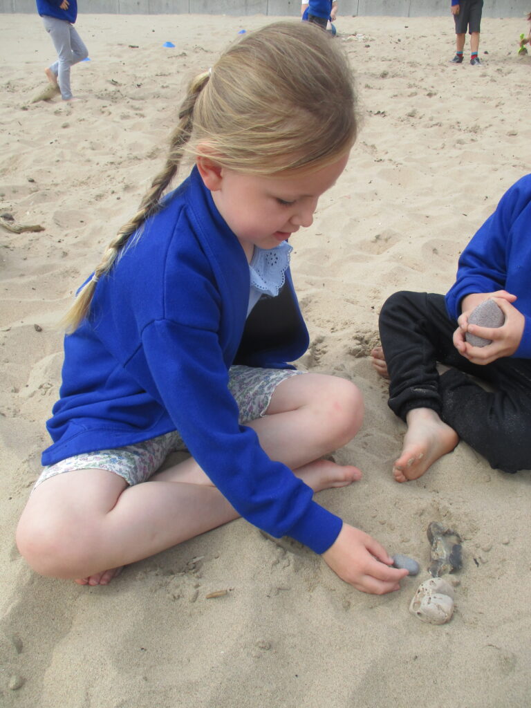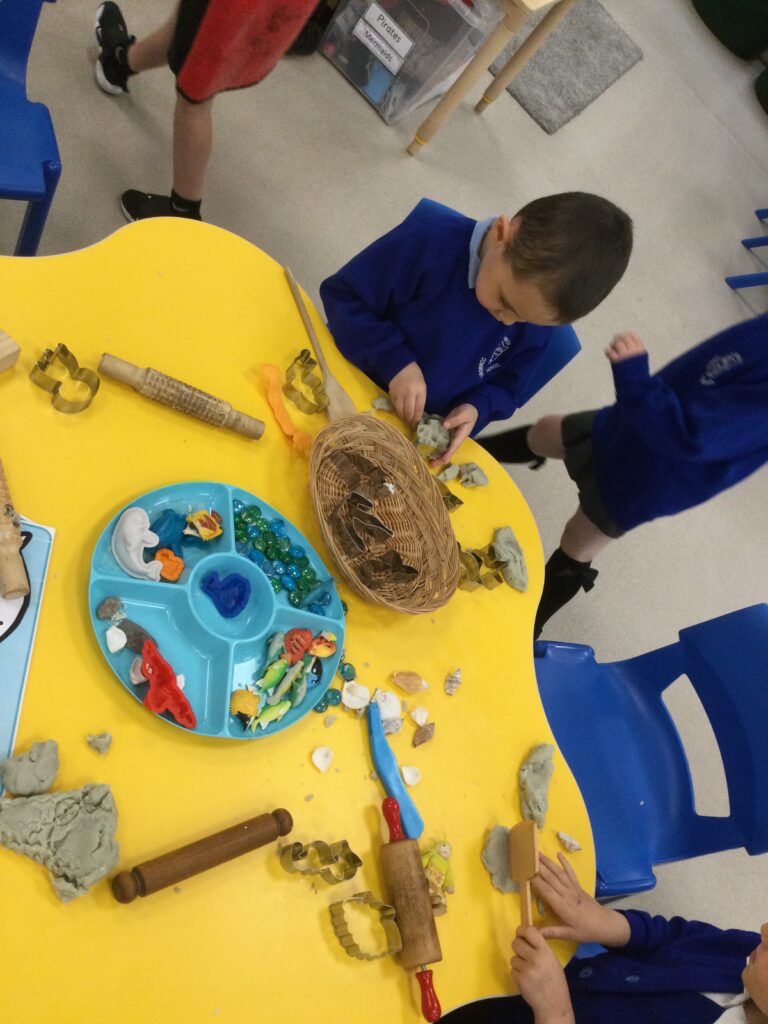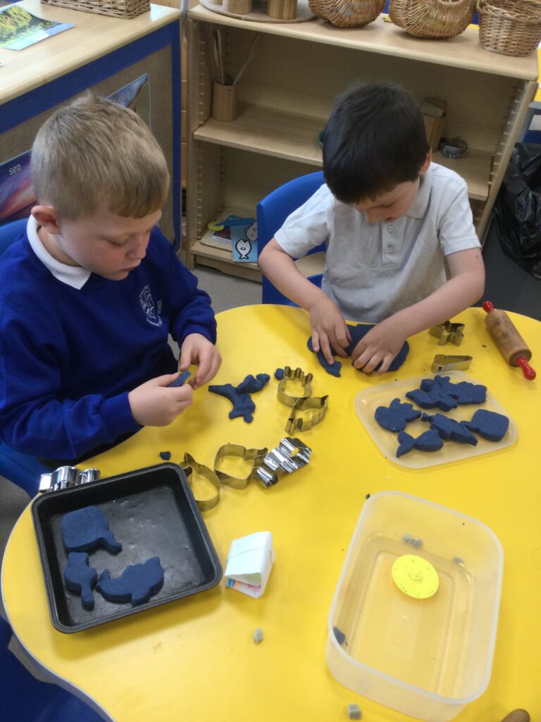 In Reception we have been learning all about the seaside and sea life. We have been exploring our seaside themed tuff tray which included , sand, sea shells, seaweed, stones and sea animals. We have been playing with the small world sea animal figures and using them in our imaginative play. We have been looking at images and videos of various beaches and their features. We have also been comparing past and present life at the beach such as the clothes that would have been worn on the beach in the past. We have been painting pictures of the seaside and under the sea, looking in particular at the plants and animals that live there.