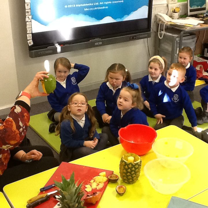 It has been health week in school. We have been learning all about how we can live a healthy and active lifestyle. Throughout the week we have took part in a range of different physical activities and have been trying many healthy food choices. We have taken part in a Zumba class, sports day and have been completing the daily mile. We have also had a bouncy castle in school. We really enjoyed taste testing all the different fruits and deciding which our favourites were. We also enjoyed taking part in game activities on the field with Camp of champions.