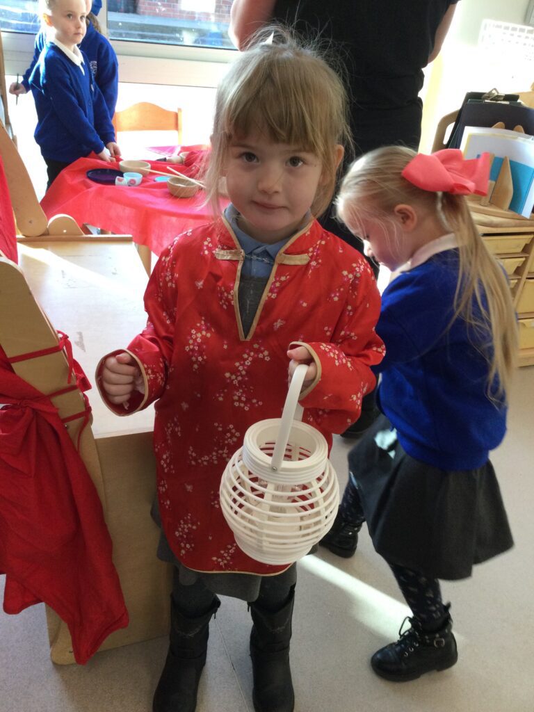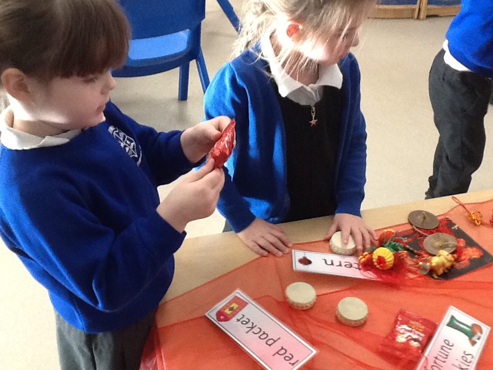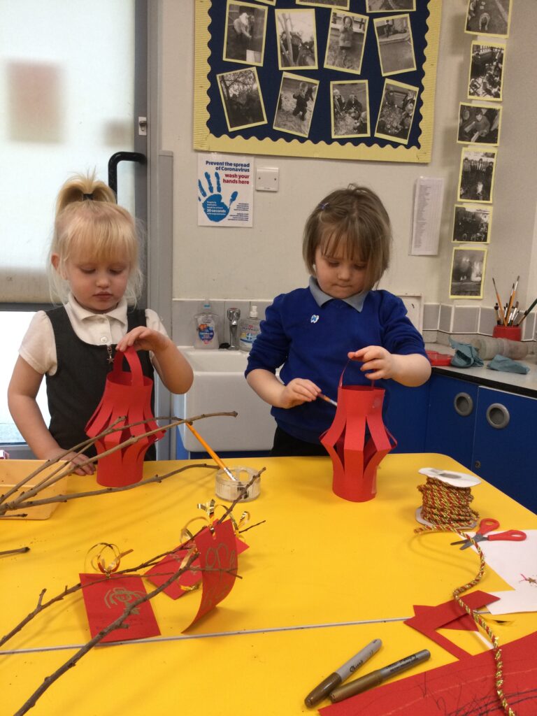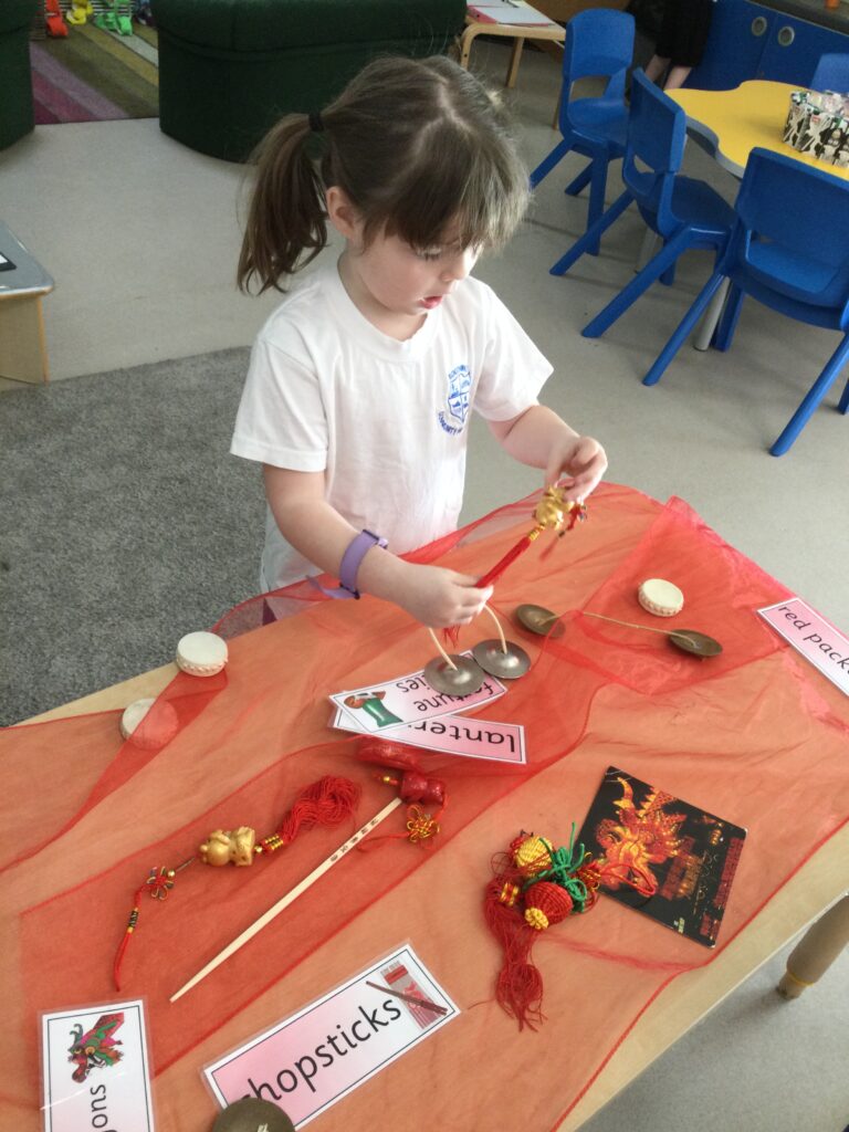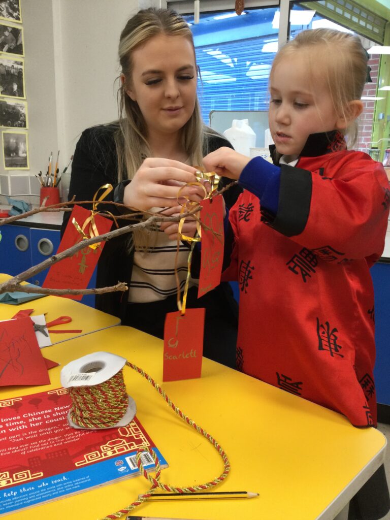 In Reception we have been learning about the traditions of the Lunar New Year. We have been learning about the Zodiac story and how the traditions came about. In Reception we have been taste testing traditional Chinese food and discussing the similarities and differences between Chinese and English culture and traditions. We have been comparing the Celebrations of the Lunar New Year and Christmas. We have also been dressing up in traditional Chinese clothing and exploring Chinese objects and artefacts such as: chopsticks, symbols and decorations. We made our very own Chinese dragon and had a parade throughout the school like the parade that takes place on the Lunar New year. We also looked at Chinese symbols and numerals and then practiced forming them in the glitter trays. We made red Chinese lanterns as red is considered a lucky colour and wrote our own wishes which we hung on our wishing tree. We have had so much fun learning all about the Lunar New Year!
