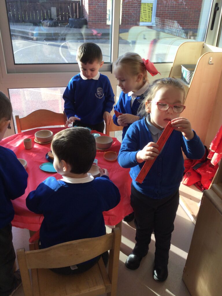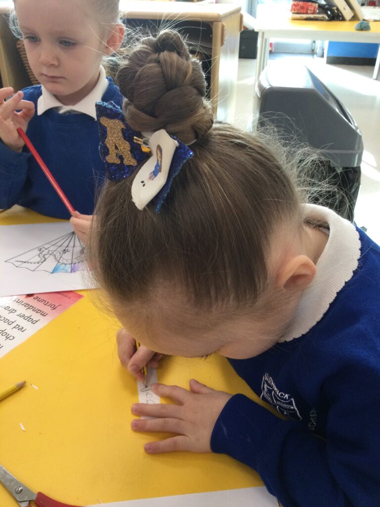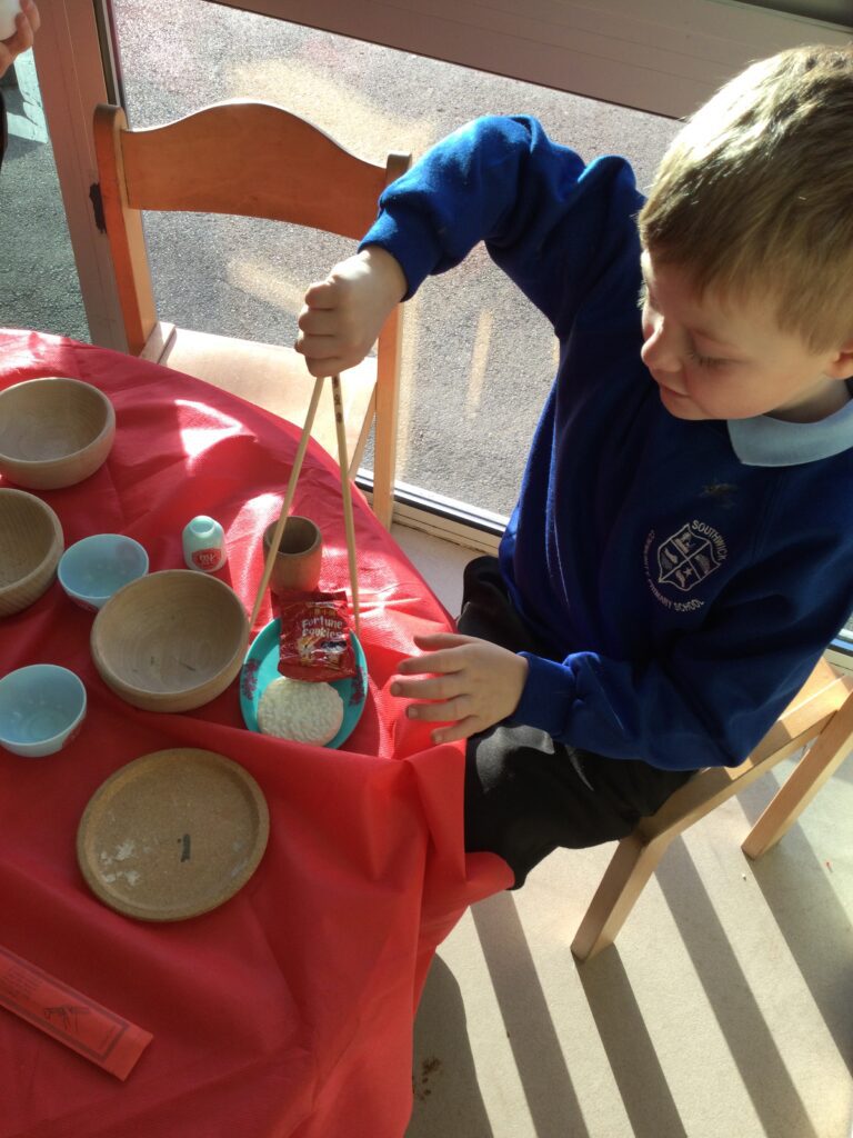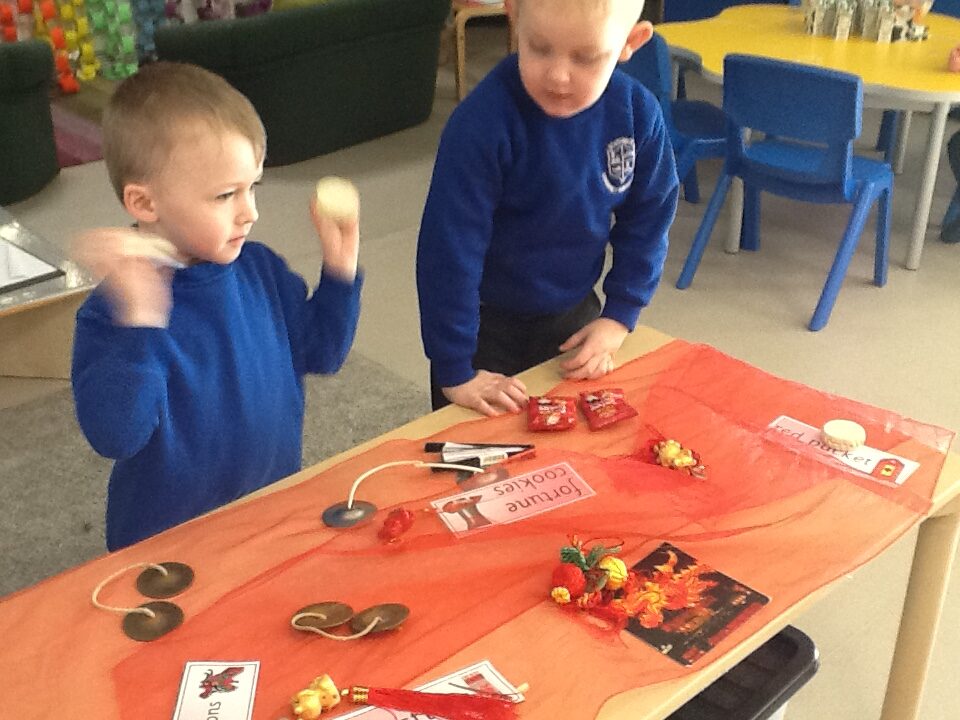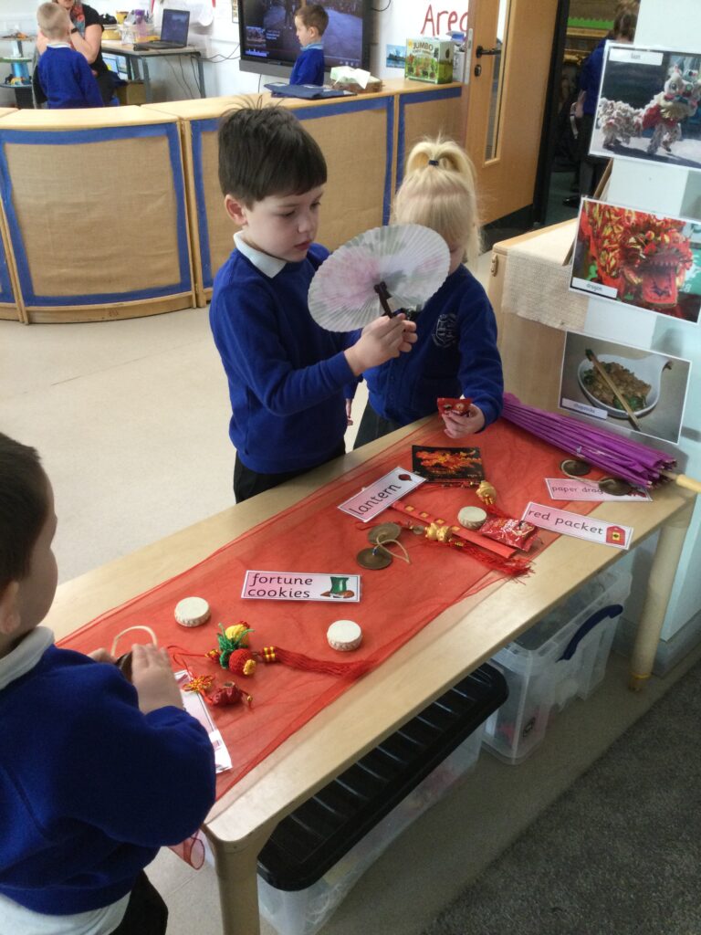 In Reception we have been learning about the traditions of the Lunar New Year. We have been learning about the Zodiac story and how the traditions came about. In Reception we have been taste testing traditional Chinese food and discussing the similarities and differences between Chinese and English culture and traditions. We have been comparing the Celebrations of the Lunar New Year and Christmas. We have also been dressing up in traditional Chinese clothing and exploring Chinese objects and artefacts such as: chopsticks, symbols and decorations. We made our very own Chinese dragon and had a parade throughout the school like the parade that takes place on the Lunar New year. We also looked at Chinese symbols and numerals and then practiced forming them in the glitter trays. We made red Chinese lanterns as red is considered a lucky colour and wrote our own wishes which we hung on our wishing tree. We have had so much fun learning all about the Lunar New Year!
