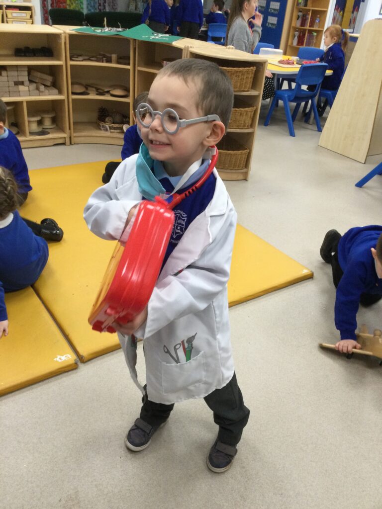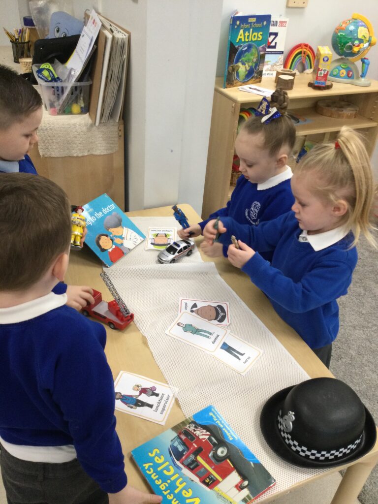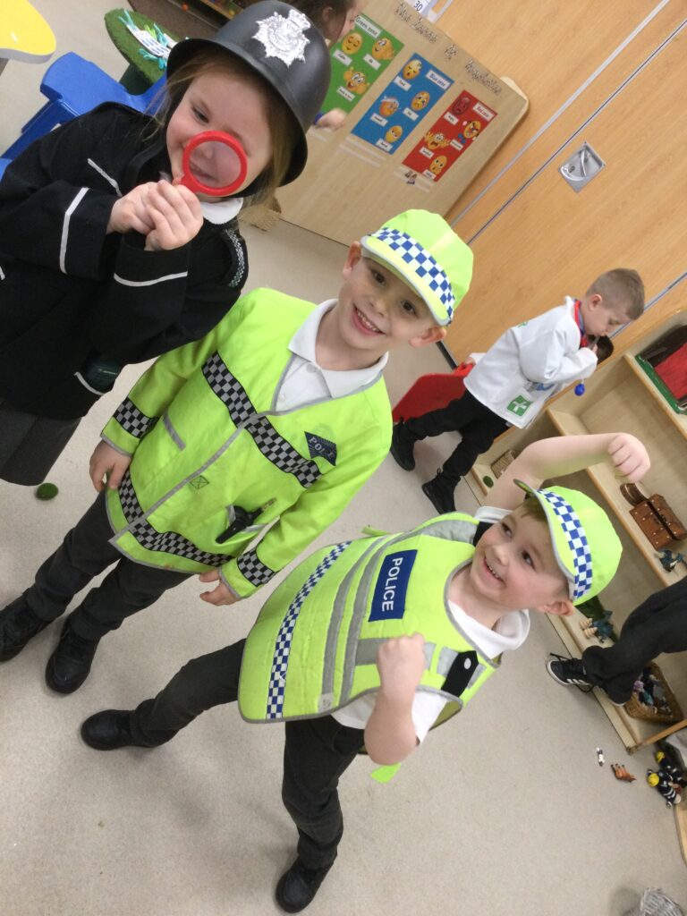 In Reception we have been learning all about different people and professionals who help us. We have been learning about their roles and how and why they are important to us. We have been engaging in lots of role play getting dressed as a real life superheroes and acting out their roles in how they help us. We have been exploring the different uniforms and vehicles they use when helping us. We have also been looking at how the profession has changed and developed over time and what has changed as well as what has remained the same. We have took part in activities such as ; sorting activities, ‘superhero lotto’, small world play, cutting and sticking, reading fiction and non fiction books, interactive games online and various creative activities. We took our role play outside and used our gross motor skills to run, jump and climb like the superheroes. We also made obstacle courses to show our strength and skills just like the people who help us.