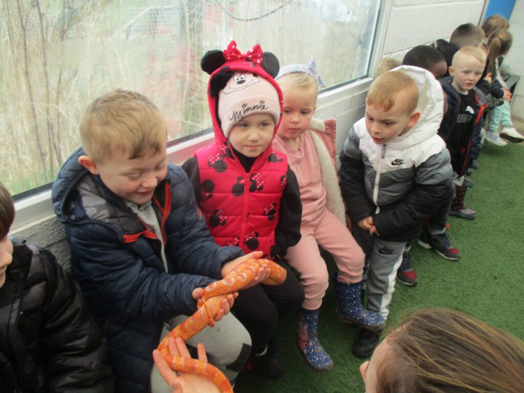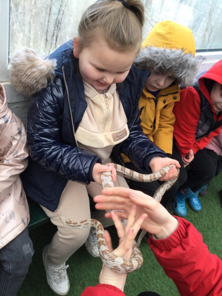 Reception have been on a trip to the Farm ! We had so much fun spending the day with lots of different and amazing animals. We loved exploring the farm and learning all about the animals and the jobs on the farm. We were able to feed some of the animals there and we also got to hold some of them. We were all very friendly and kind when handling the animals, also very brave when we went to the Reptile room ,where we held snakes ! We loved playing on the park at the end of the trip and spending a day full of fun with our friends and teachers.