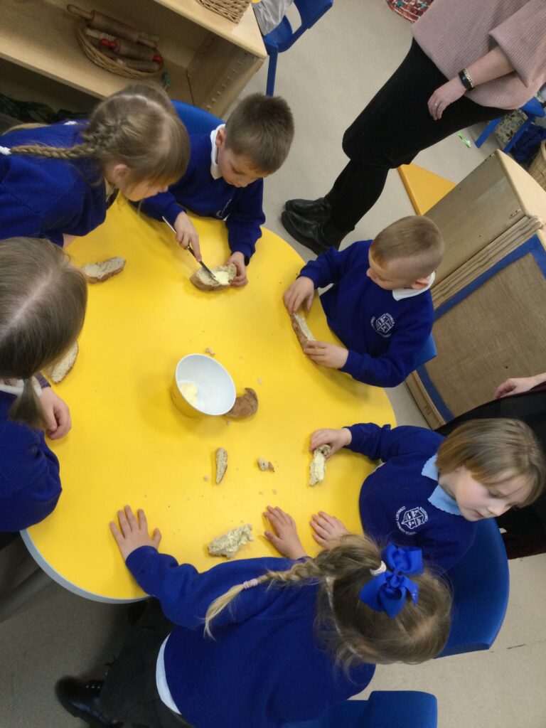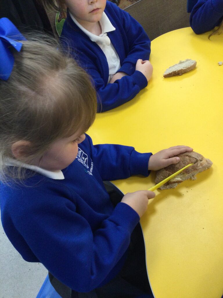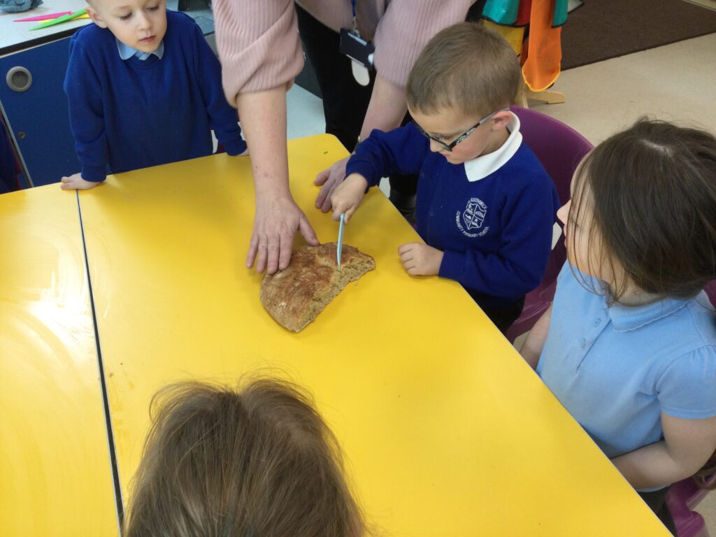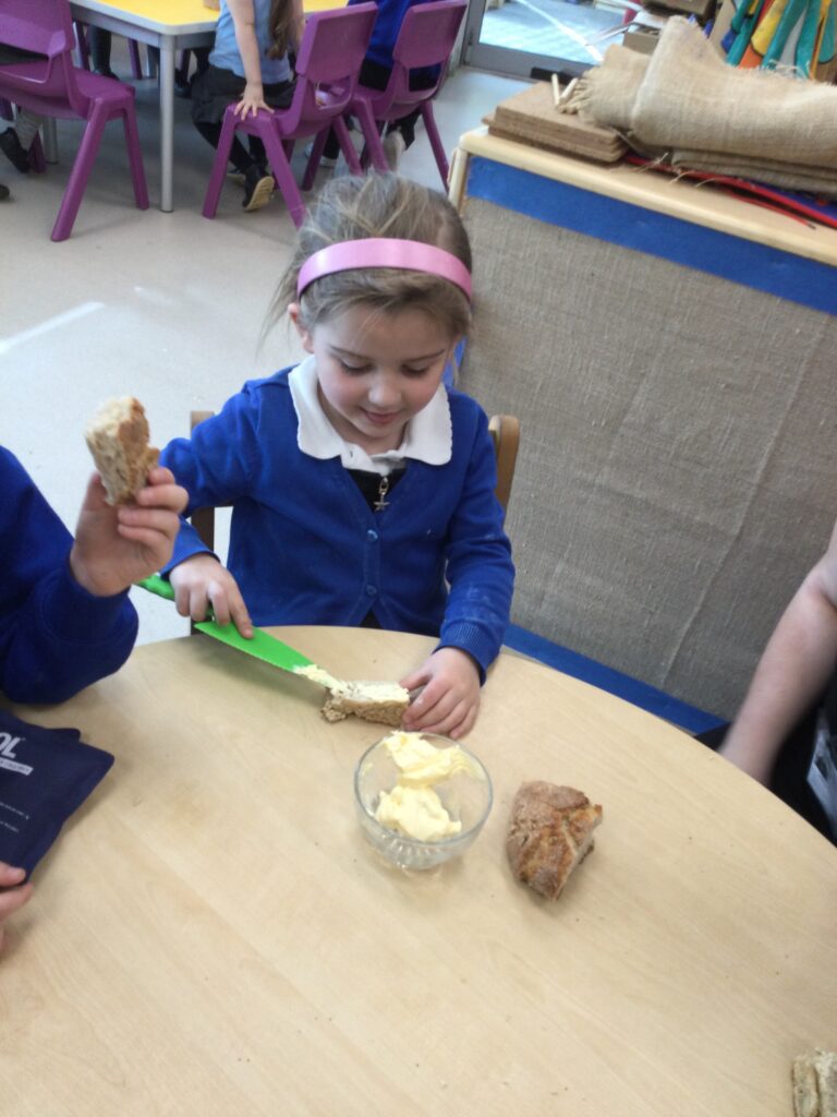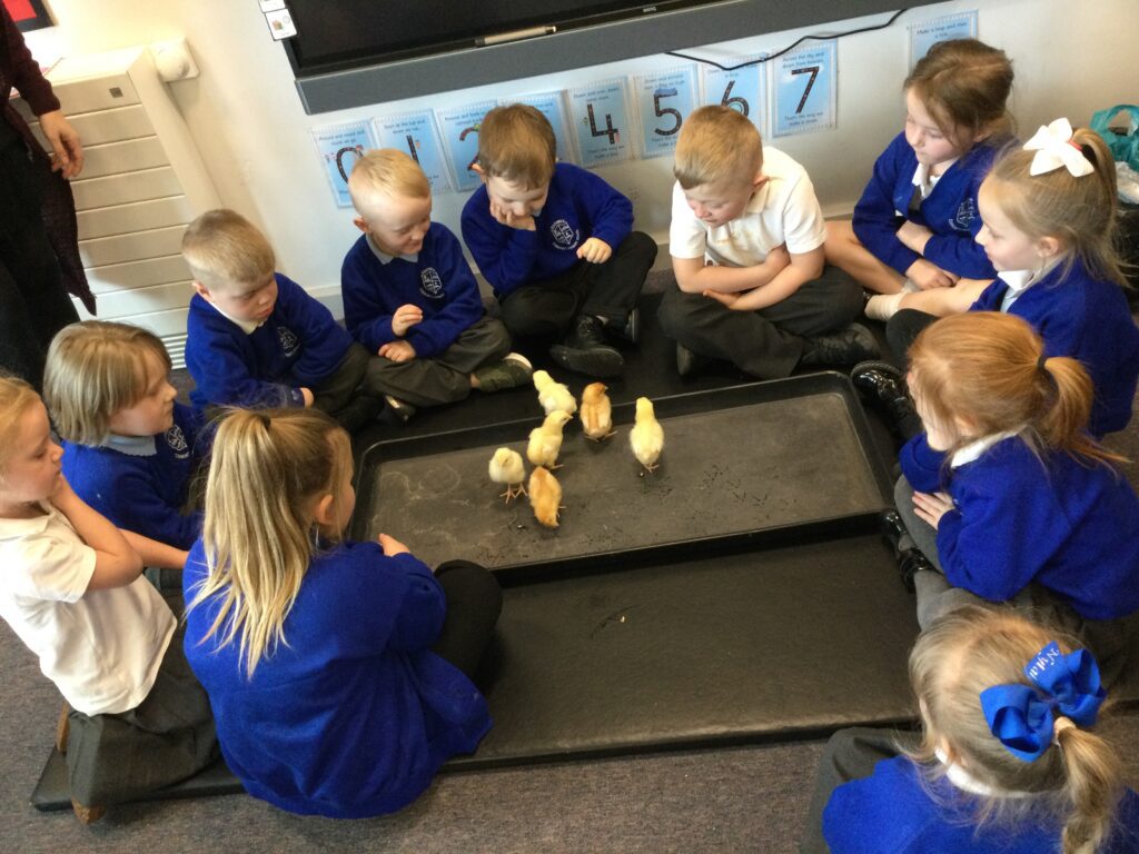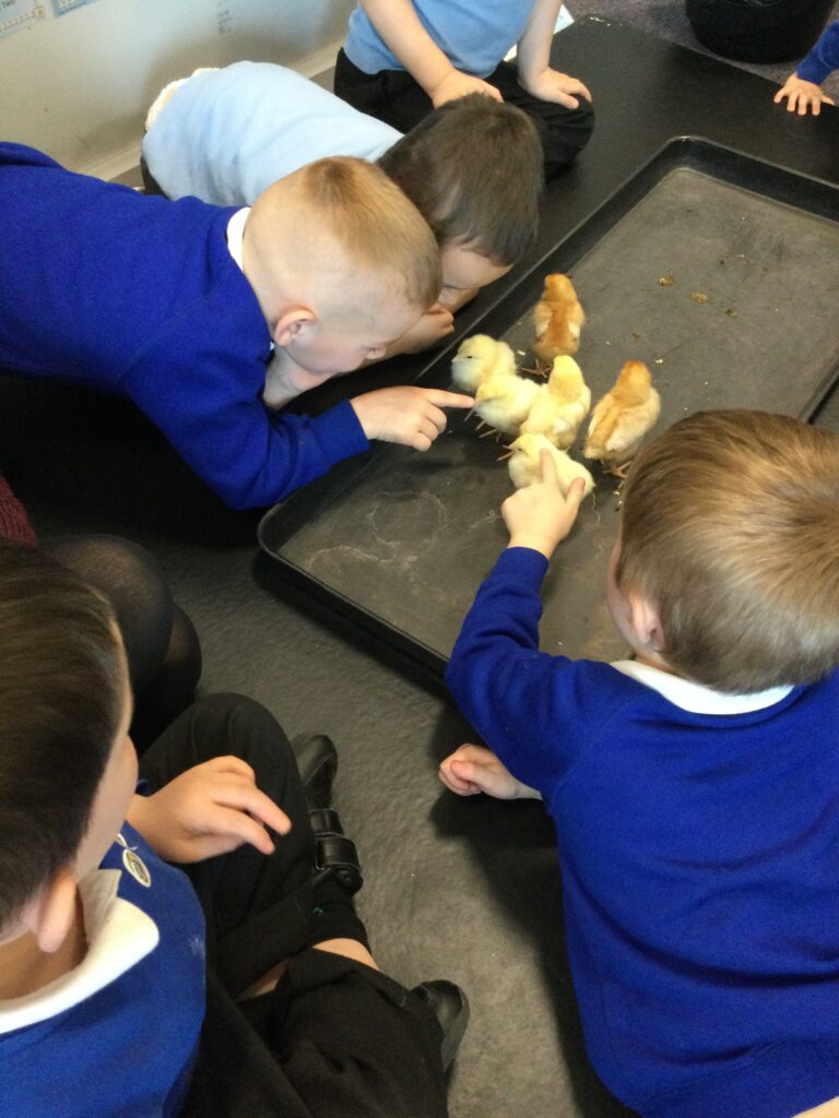 In Reception we have been learning all about the Farm. We have been learning all about the different animals on the farm, the names of their offspring, where the different animals live on the farm, the produce these animals make and the various jobs on the farm. We have been looking at the role of a Farmer and the different responsibilities they have such as harvesting and growing all the crops also cleaning and feeding the various animals. We have also been learning all about the story of the ‘Little Red Hen’. We then made our own bread just like the Hen from the story, once baked we cut and tasted our own bread. We also have chicks in school ! we had so much fun holding and observing them.