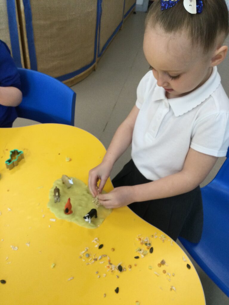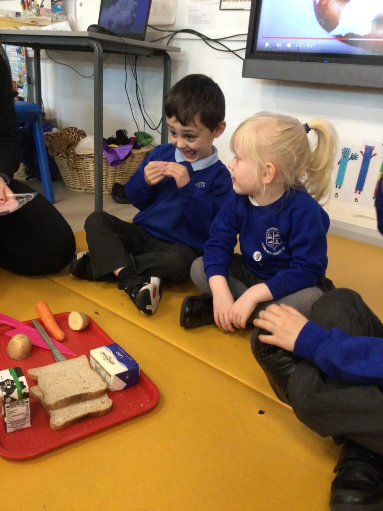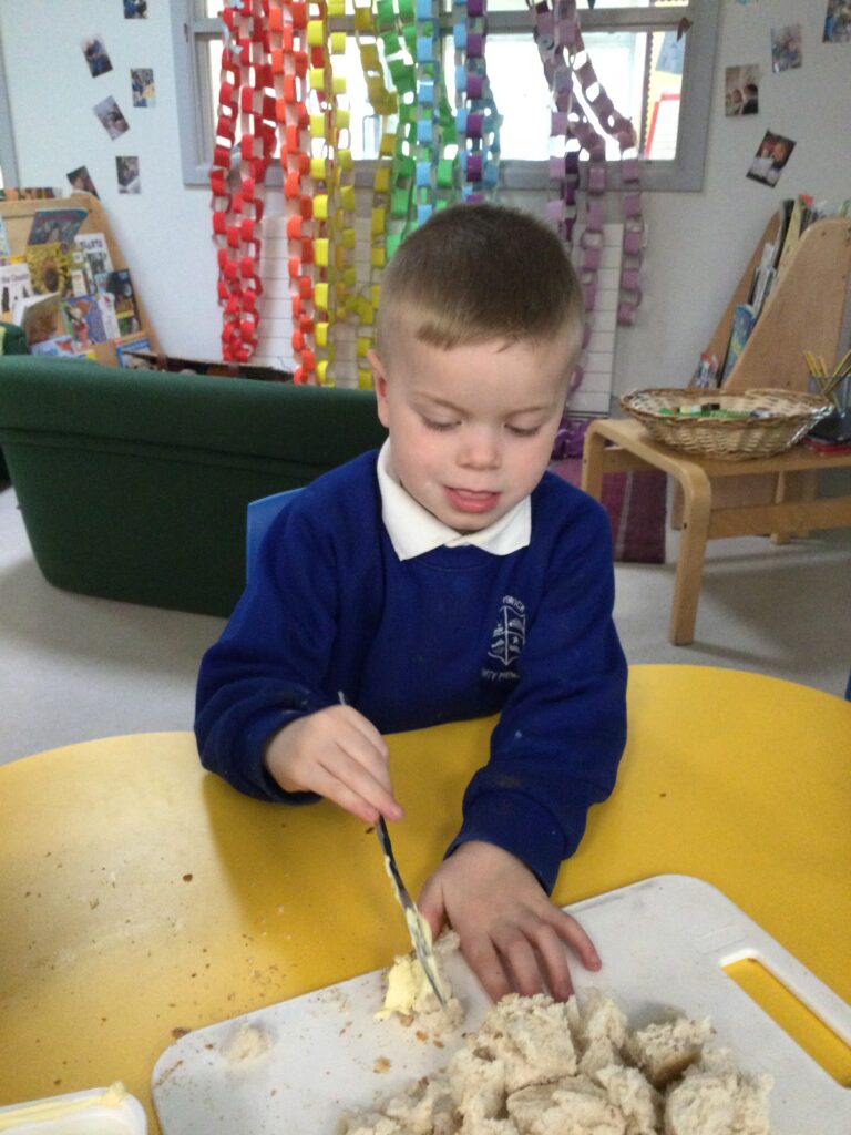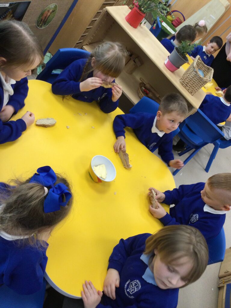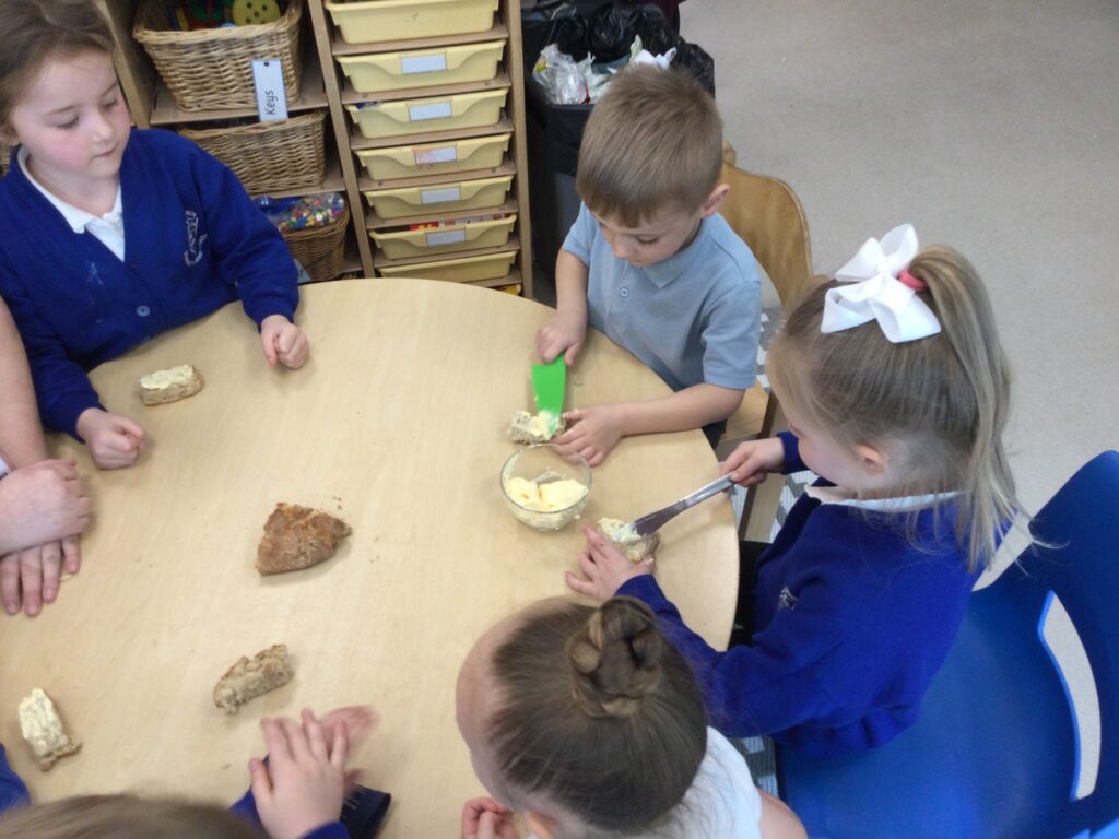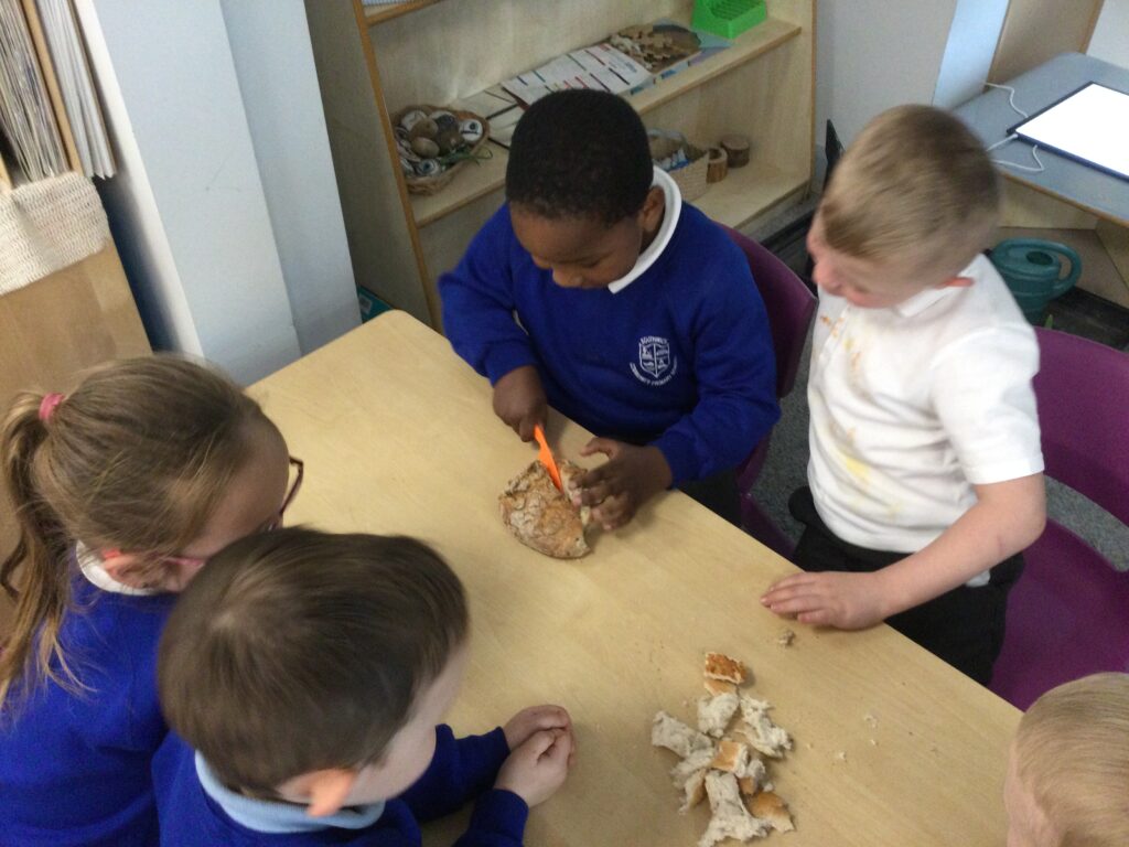 In Reception we have been learning all about the Farm. We have been learning all about the different animals on the farm, the names of their offspring, where the different animals live on the farm, the produce these animals make and the various jobs on the farm. We have been looking at the role of a Farmer and the different responsibilities they have such as harvesting and growing all the crops also cleaning and feeding the various animals. We have also been learning all about the story of the ‘Little Red Hen’. We then made our own bread just like the Hen from the story, once baked we cut and tasted our own bread. We also have chicks in school ! we had so much fun holding and observing them.