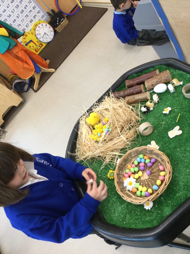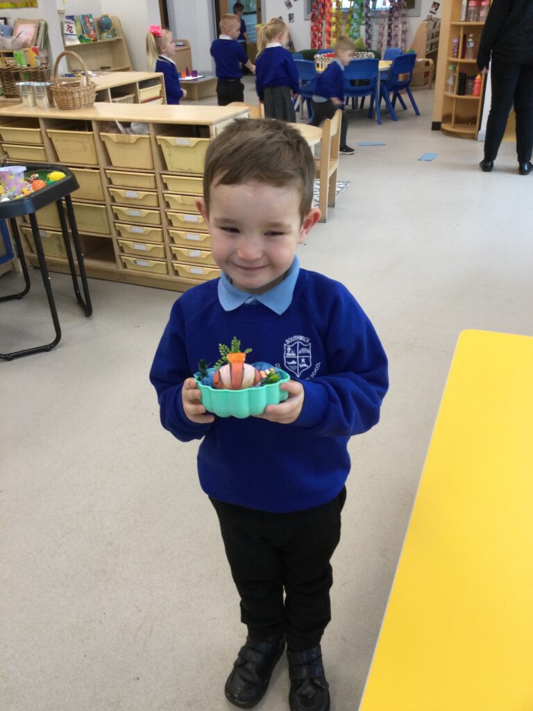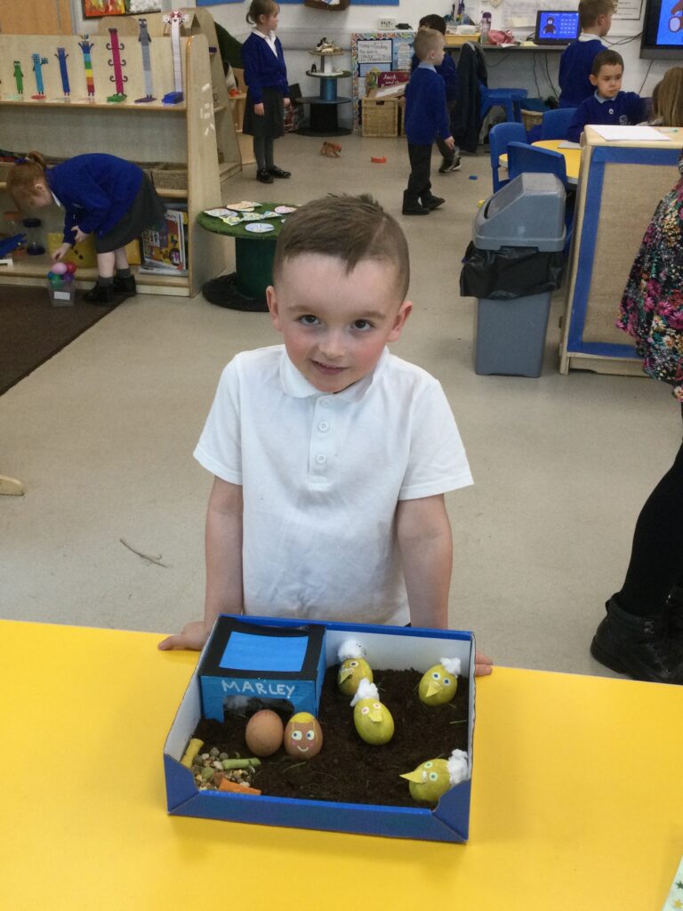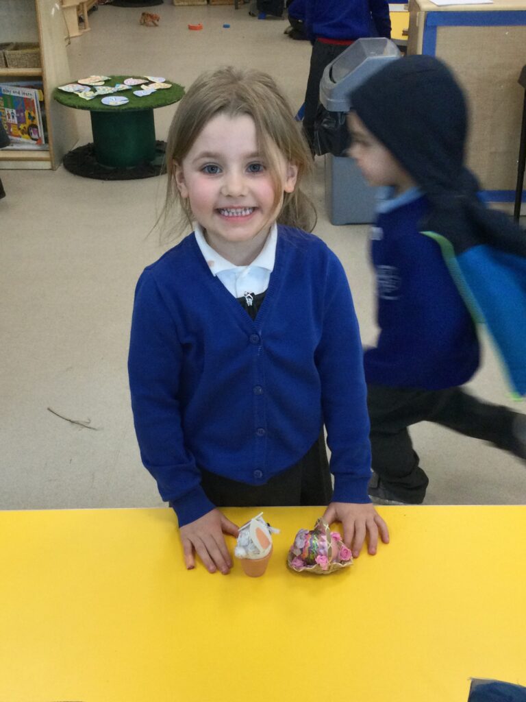 In Reception we have been learning all about the Easter Story and the traditions of Easter. We had our own egg hunt in school, we also decorated our own biscuits and made Easter cards. Throughout the school we had an Easter competition where each year group displayed their work in the sports hall. We also had an egg decorating competition which some of the children brought in from home. We took part in a range of Easter themed activities throughout the week such as an egg and spoon race, various craft activities and Easter singing practice.
