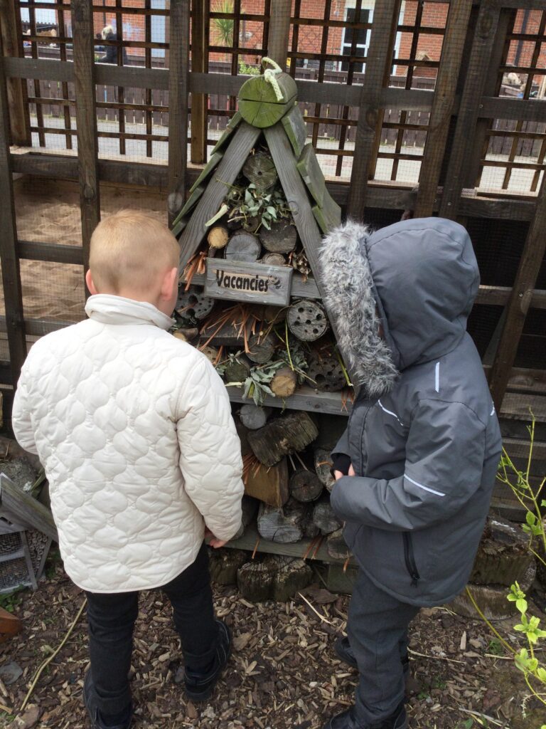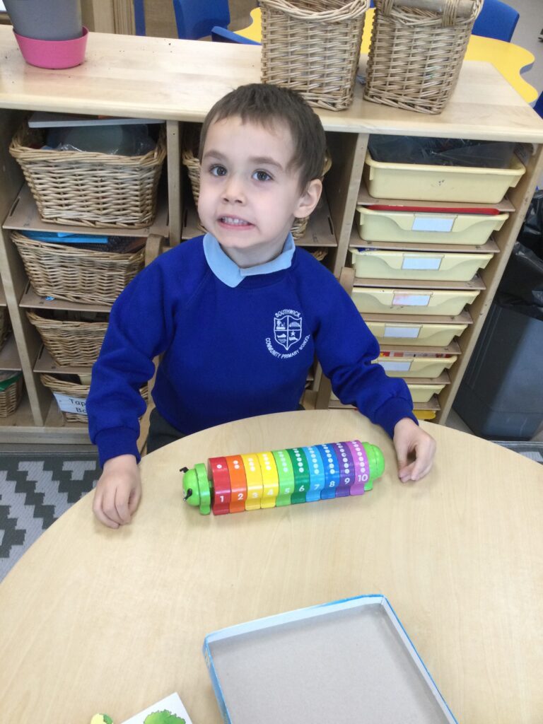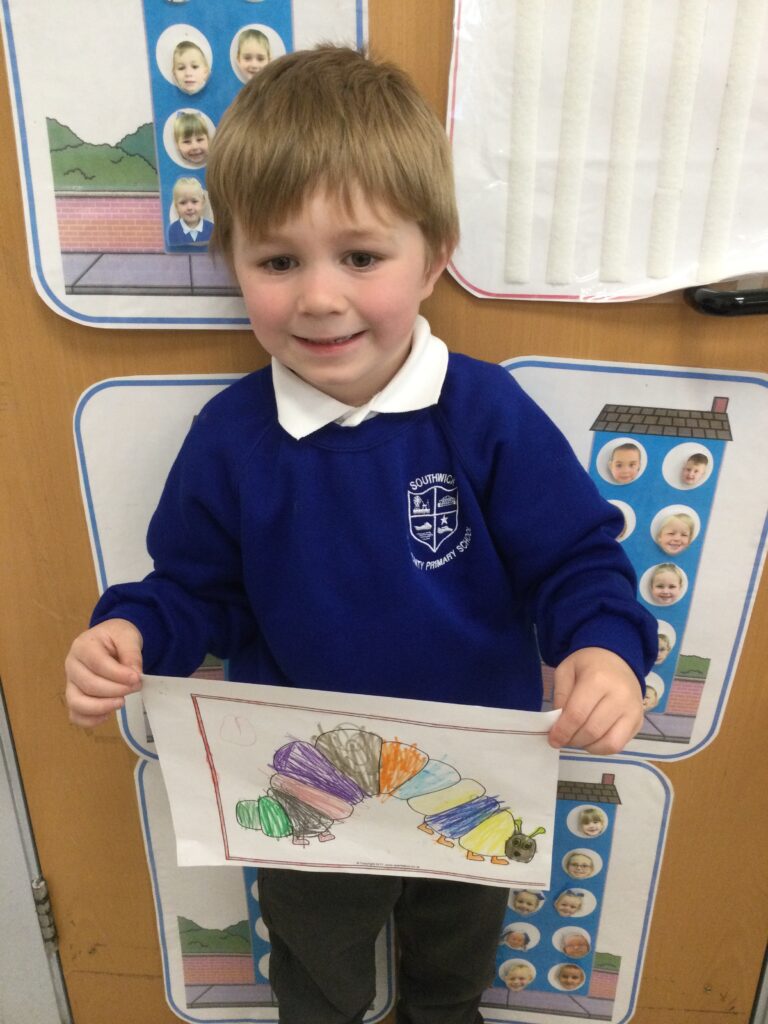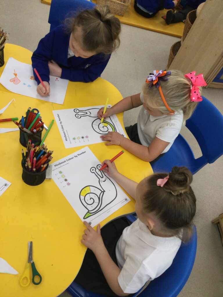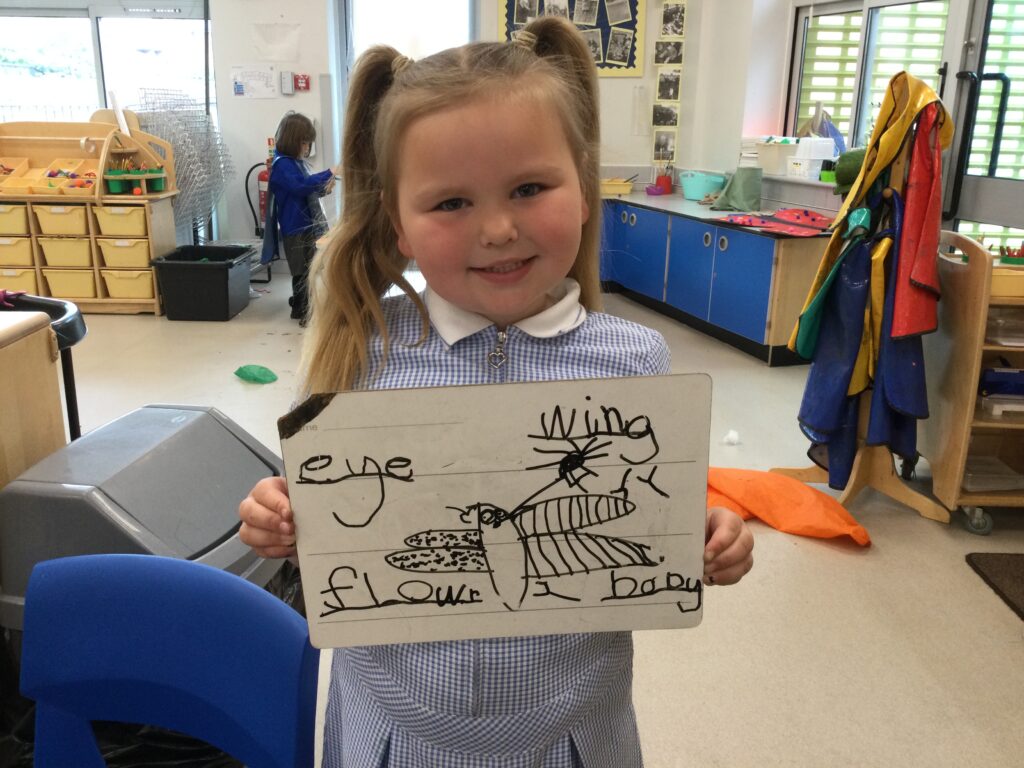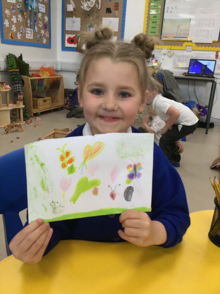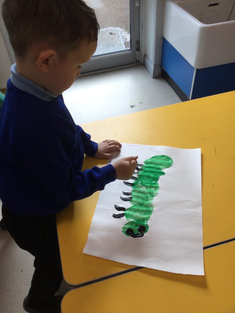 Reception have been learning all about mini beasts. We have been looking at the names of different mini beasts, labelling their body parts, also looking at the different habitats that mini beasts live in. We went on a mini beast hunt outside where we searched for the mini beasts in different areas such as in our bug hotel, in the soil, and under rocks and logs. We also made our own mini beast habitats both indoors using the Junk modelling materials and outdoors using natural resources. We have been drawing, painting and labelling pictures of mini beasts and have been reading a range of both fiction and non-fiction books which we have learned so many new and interesting facts from. Reception have studied the lifecycle of a caterpillar and have enjoyed exploring the provision with the different mini beast themed activities out to explore.