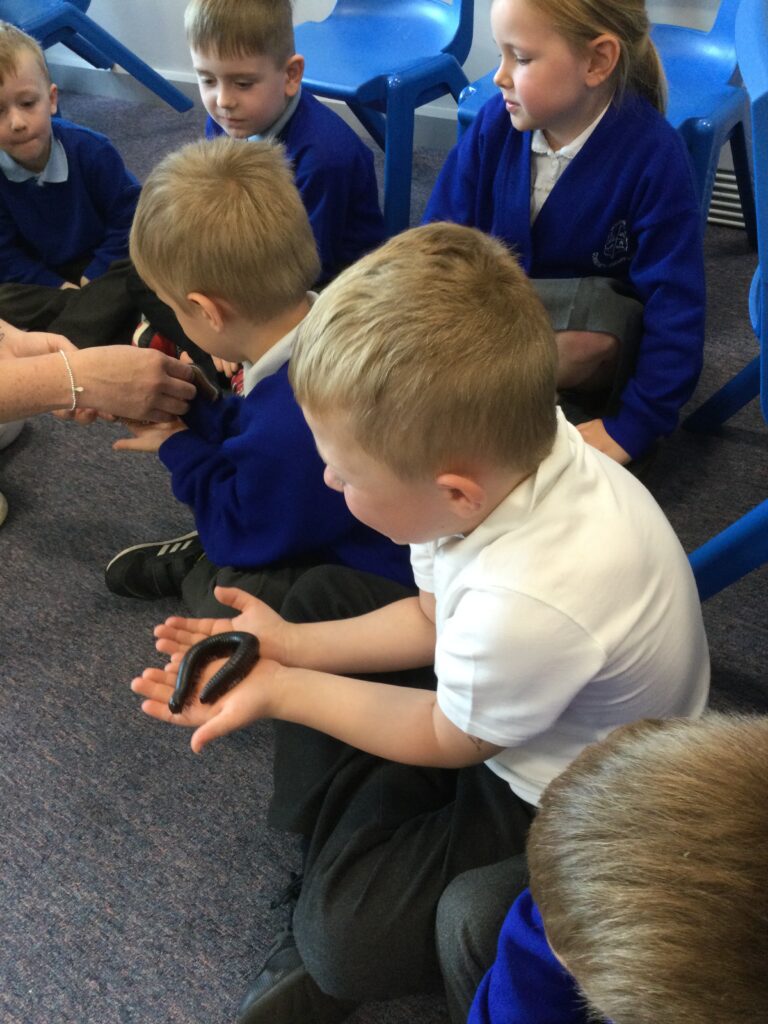 Reception had a very special visitor in school this week who brought us some mini beats to hold, look at and learn about. There were also other exotic animals, these were the animals who eat the mini beasts. We took part in craft activities and read stories all about mini beasts. We even designed our very own type of mini beast which we shared and discussed with our friends. We had so much fun learning about all the different mini beasts and getting to experience and see them in real life.