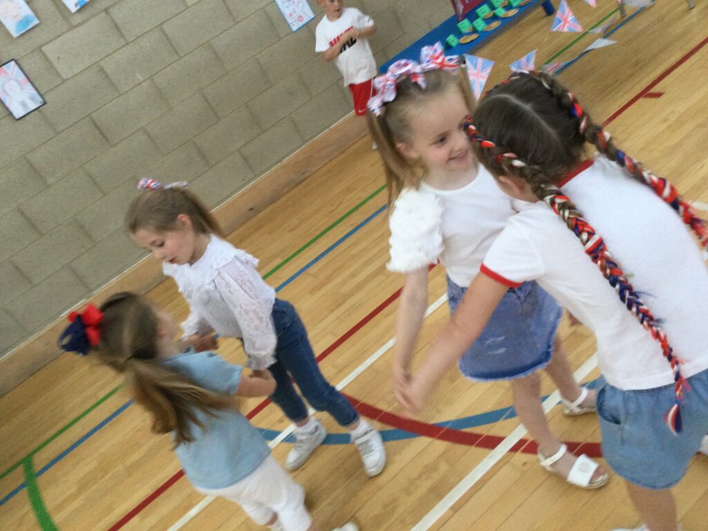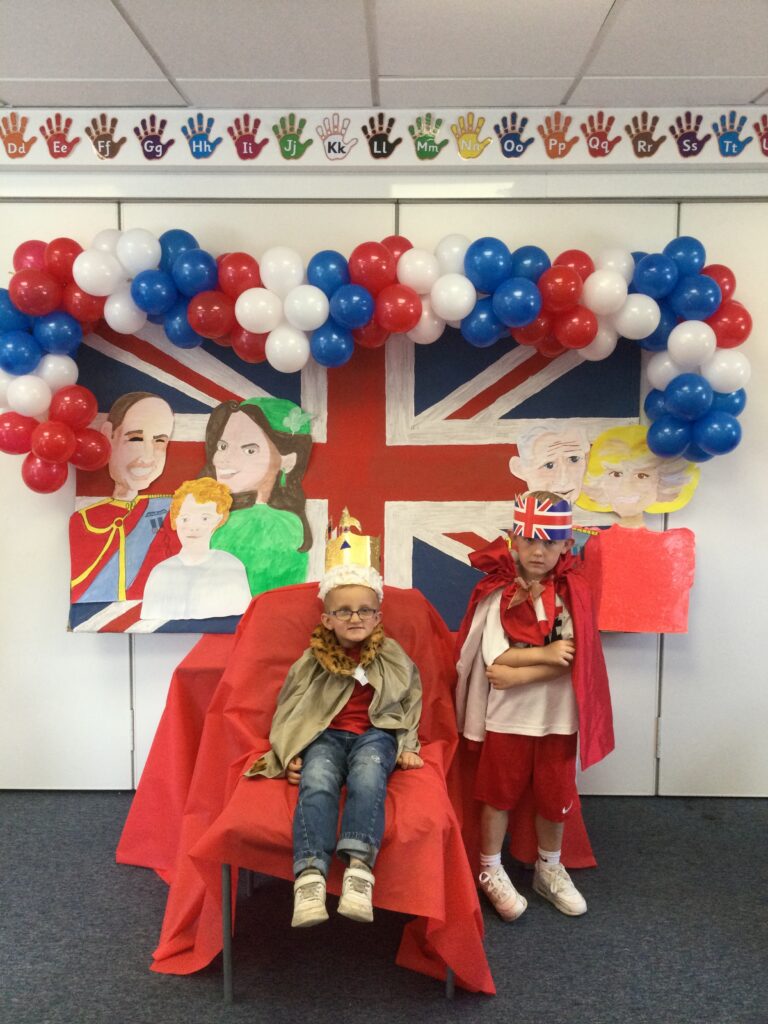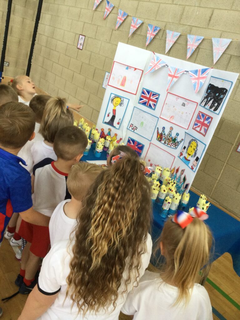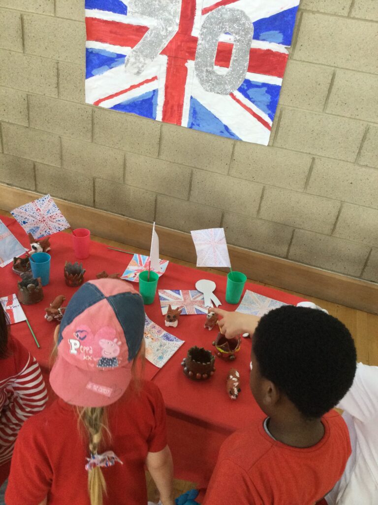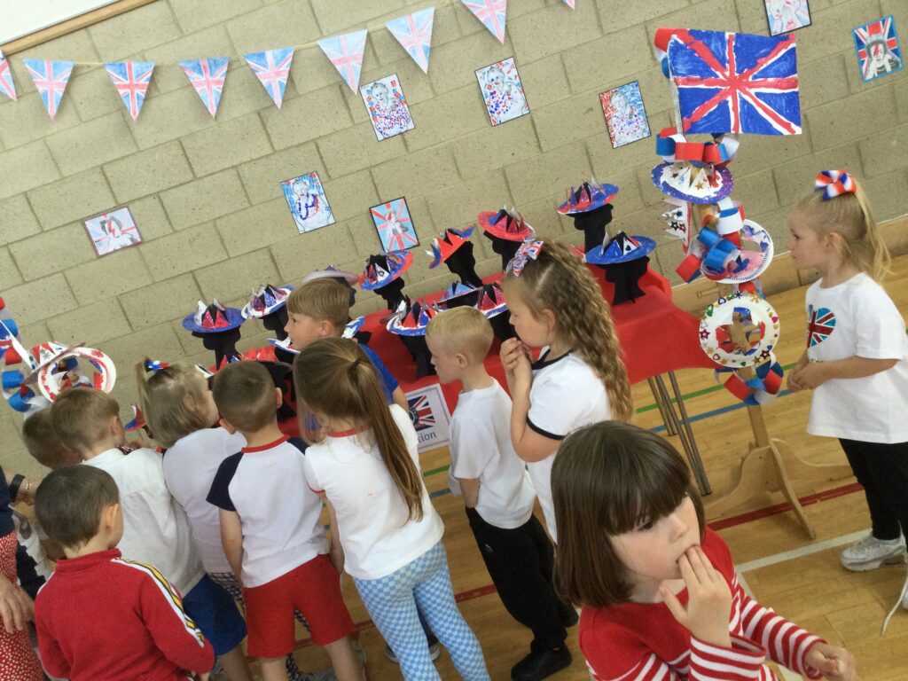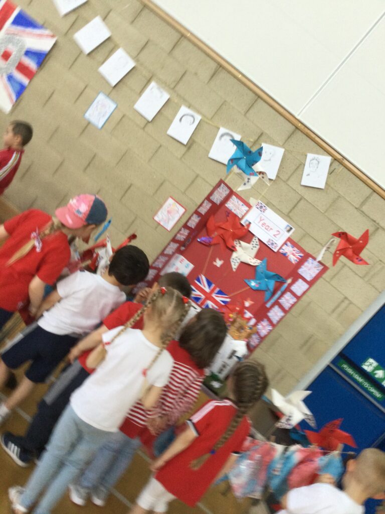 We spent the whole day celebrating the Platinum Jubilee with the whole school. We came into school dressed in the colours of the Union Jack flag and took part in various Jubilee themed activities. We went up to the sports hall and enjoyed looking at each year groups Platinum Jubilee themed crafts. We then had a party where we played lots of games. We enjoyed taking lots of photos in the photo booth using the props and frames. We had so much fun with all of our class friends and teachers.