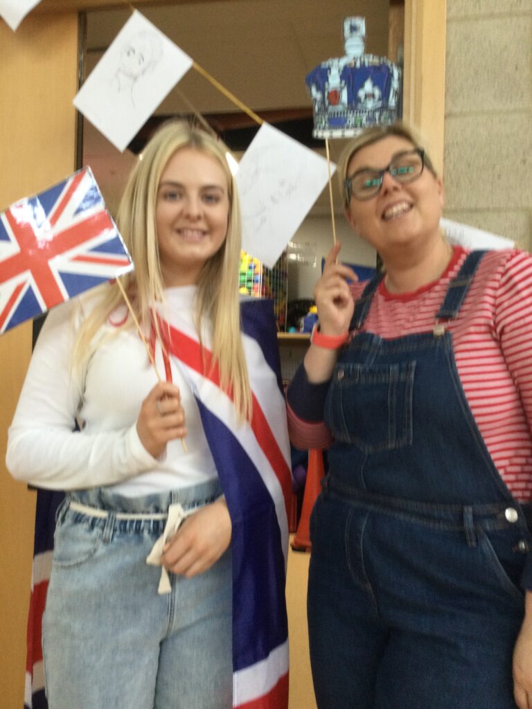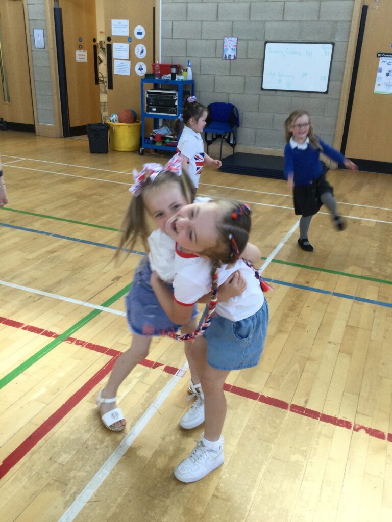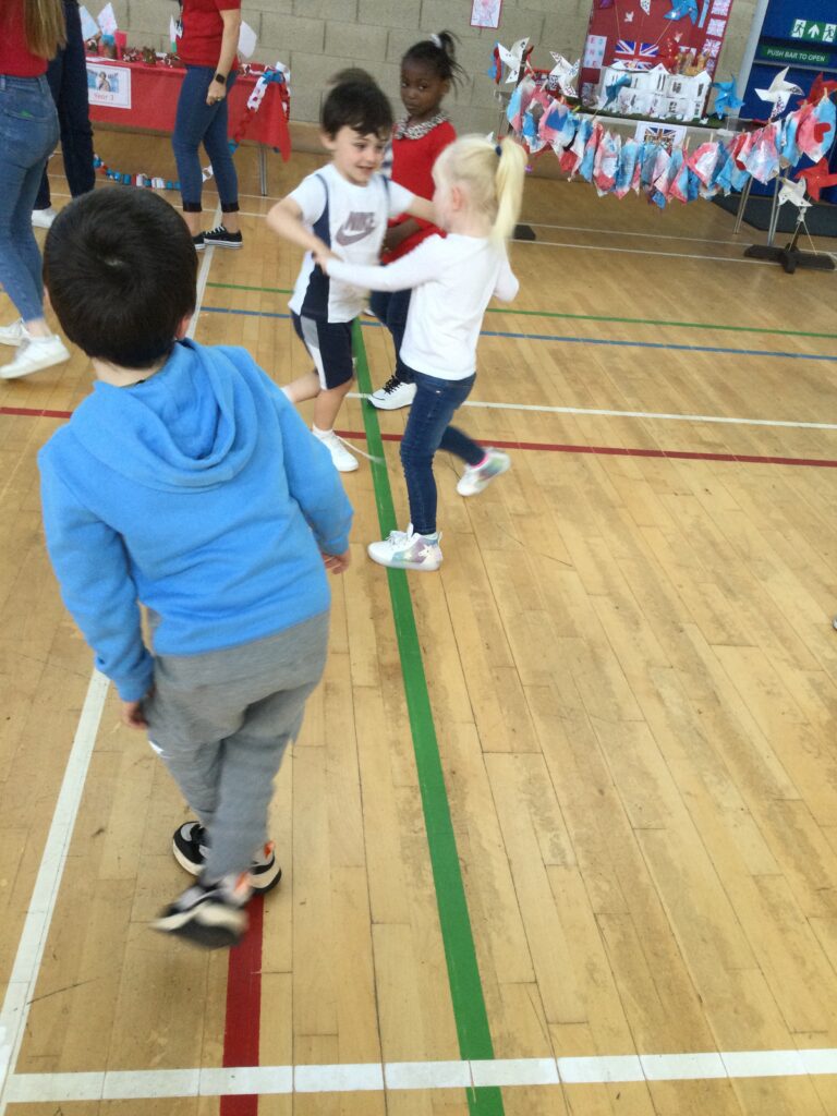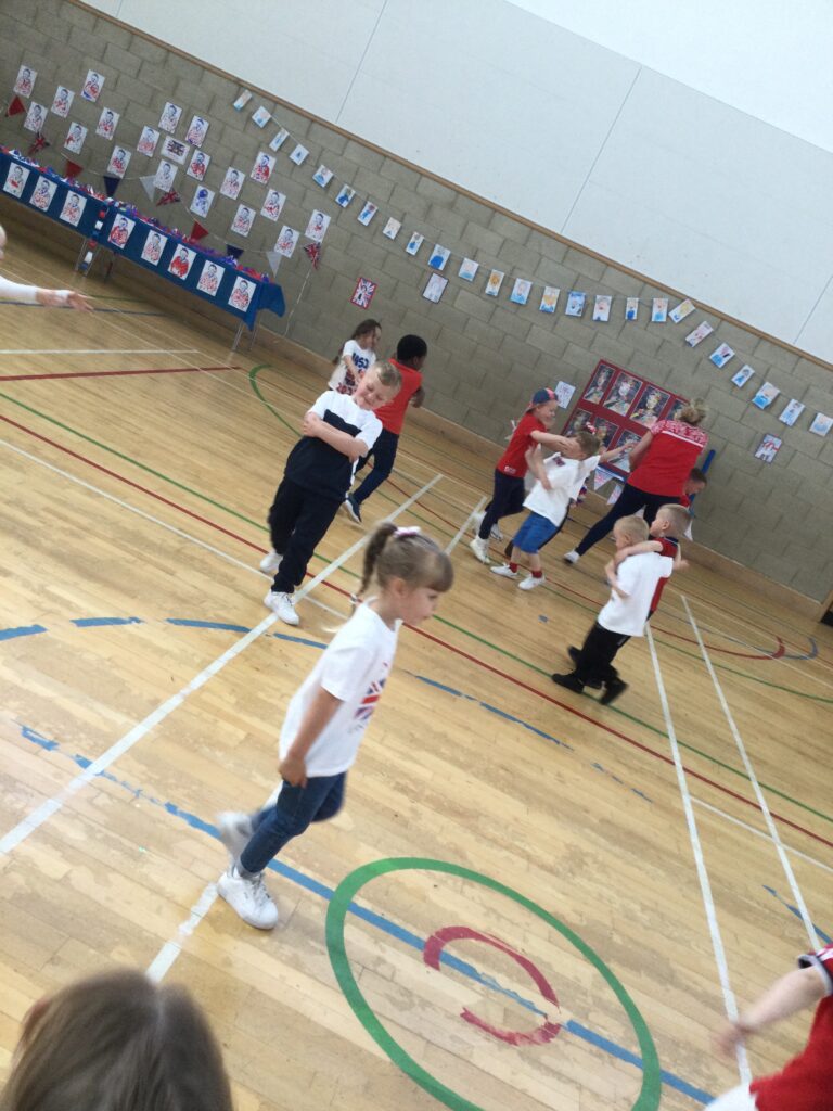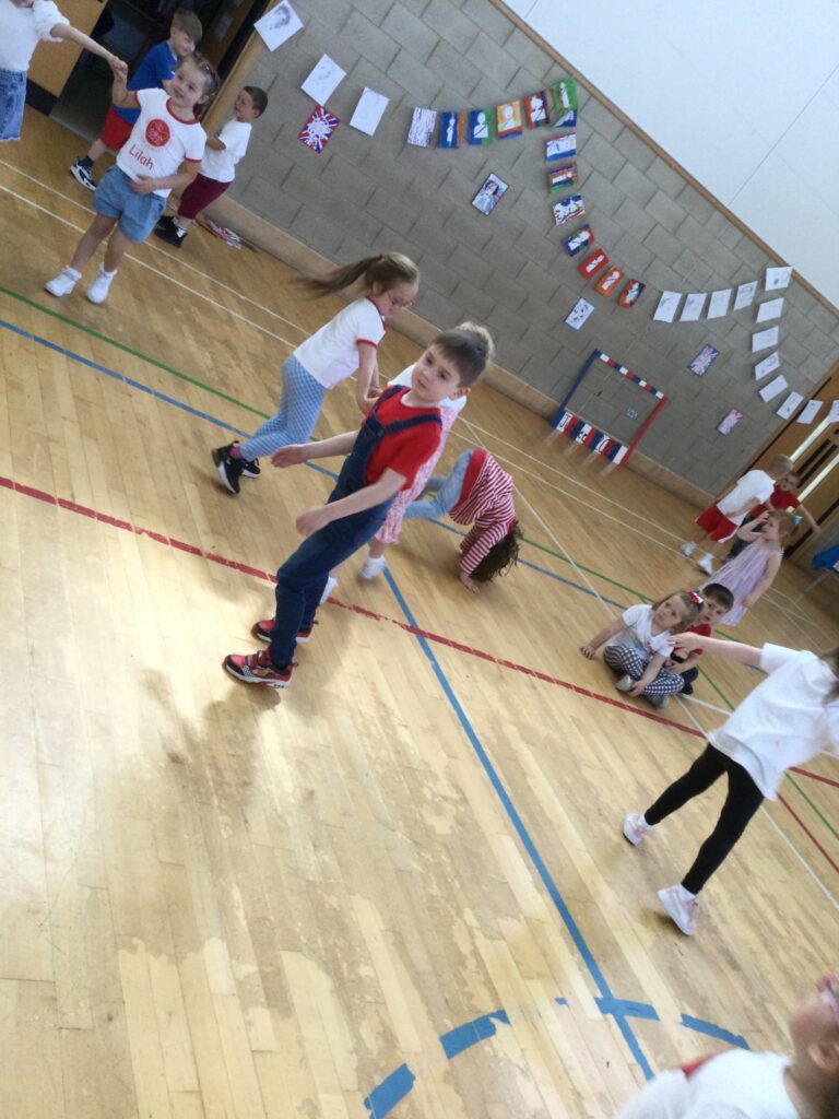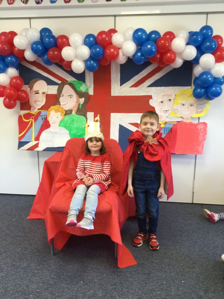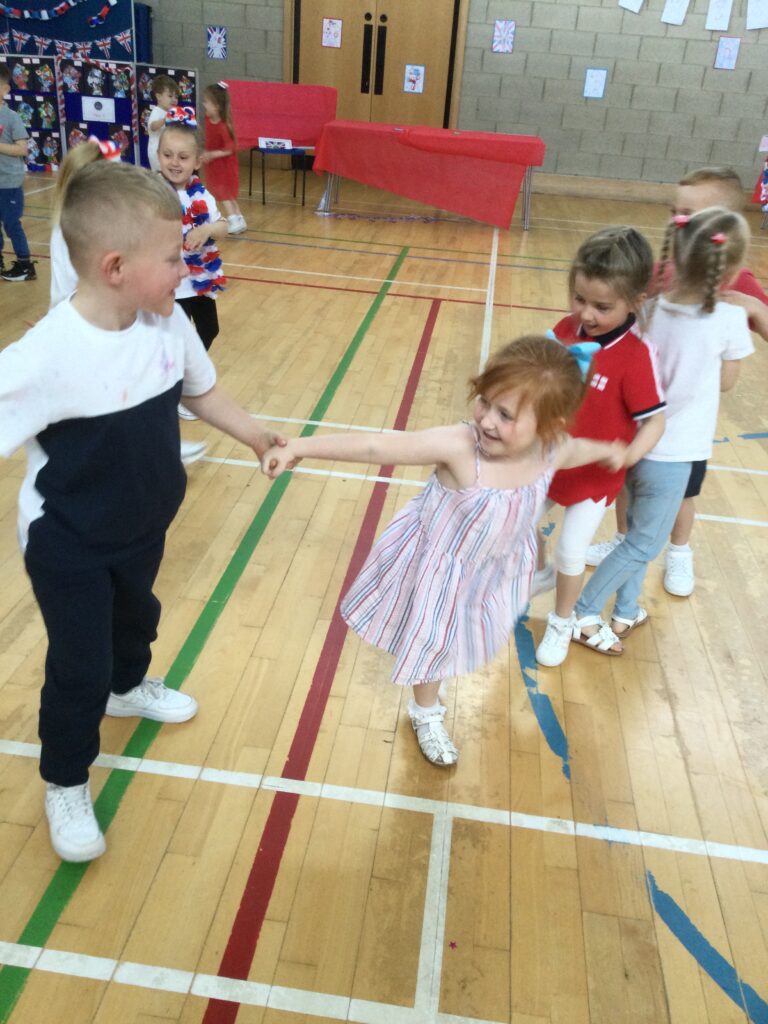 We spent the whole day celebrating the Platinum Jubilee with the whole school. We came into school dressed in the colours of the Union Jack flag and took part in various Jubilee themed activities. We went up to the sports hall and enjoyed looking at each year groups Platinum Jubilee themed crafts. We then had a party where we played lots of games. We enjoyed taking lots of photos in the photo booth using the props and frames. We had so much fun with all of our class friends and teachers.
