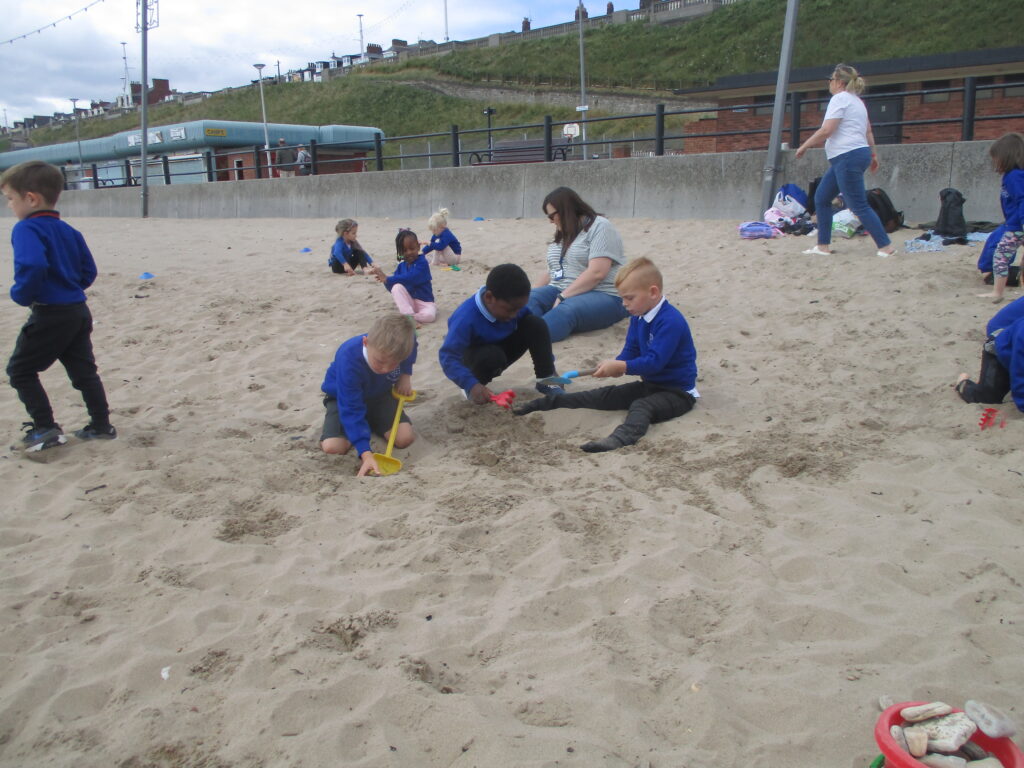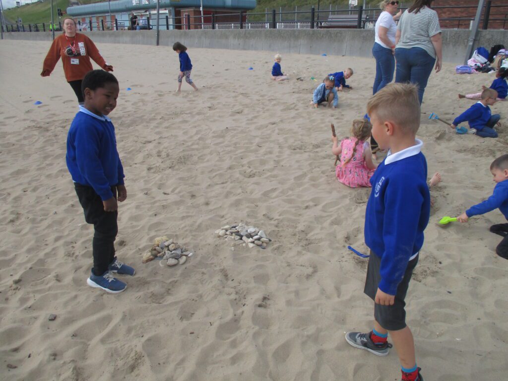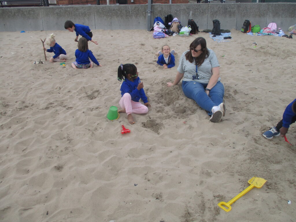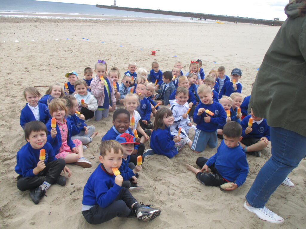 Reception have been on a trip to the beach. We had so much fun playing in the sand and building sandcastles with our friends. We even had ice-lollies as a special treat. We really enjoyed spending the day with our class and making amazing memories together. After the beach and our packed lunch, we walked up to, Roker Park and enjoyed climbing on the pirate ship, swinging on the ropes and playing ring games with our class. What a lovely day we all shared together.