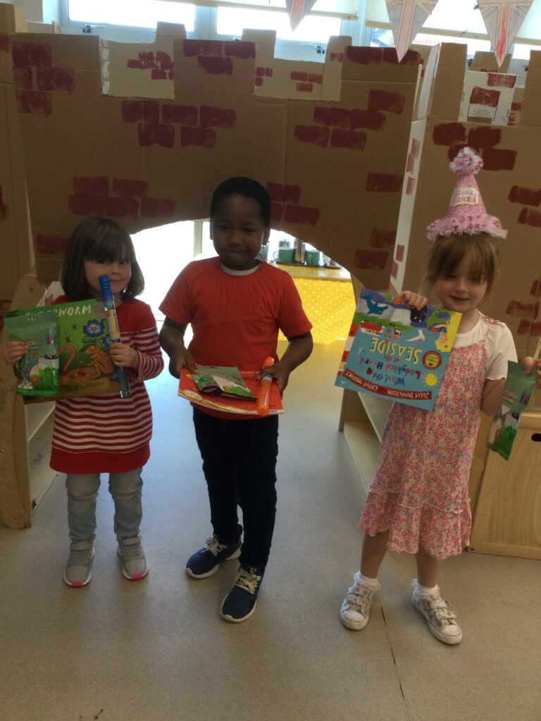 In Reception for World book day we dressed up as a character from our favourite story and brought the book into school to show our friends. Throughout the day we took part in different activities such as drawing and labelling the character we came dressed as, making our own book marks and taking part in story sessions throughout the day. We also read with the year six children, who we very much enjoy spending time with . We went up to the sports hall where there was a ‘world book day fayre’ at the fayre we made and decorated our own biscuits to eat whilst reading books we purchased in the reading den.