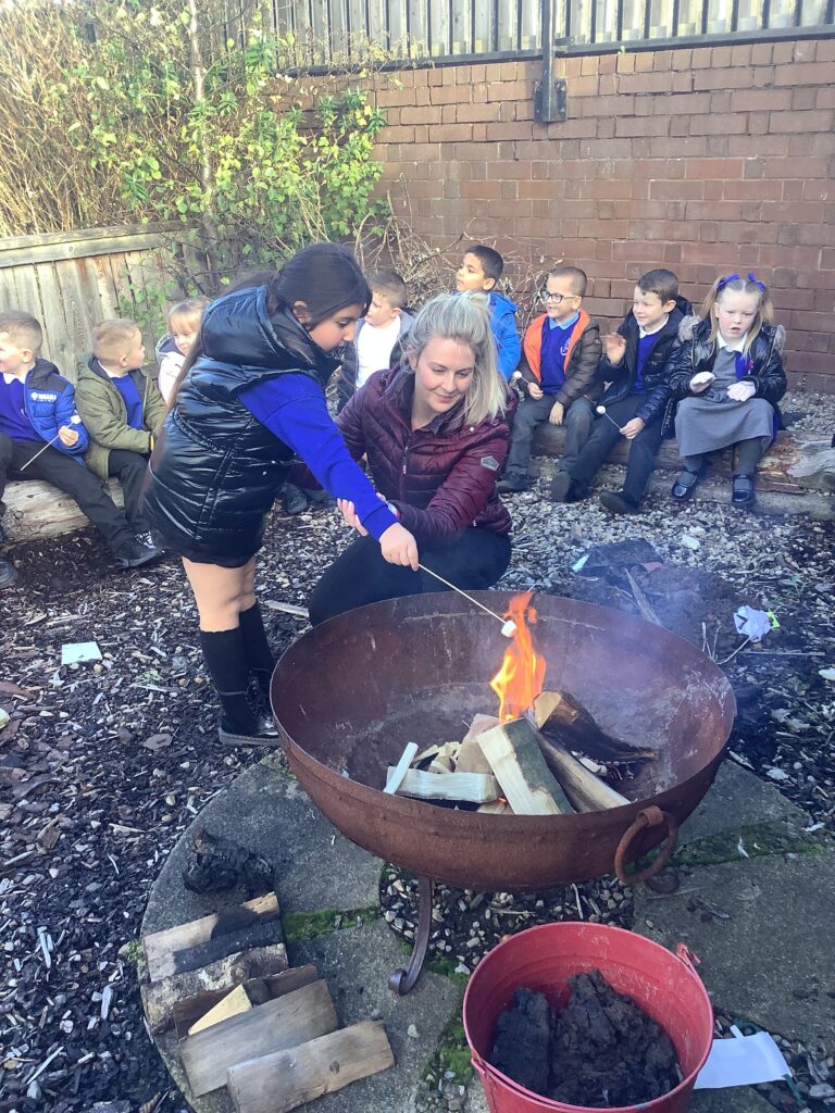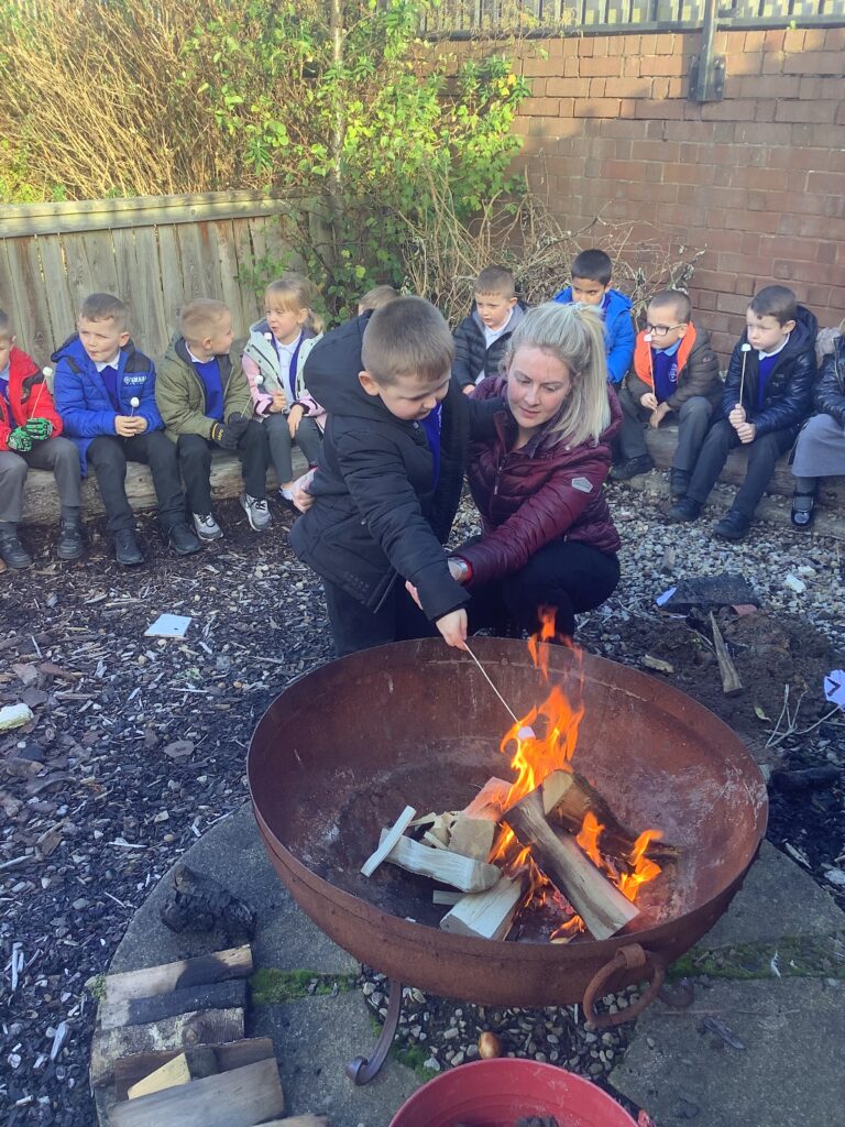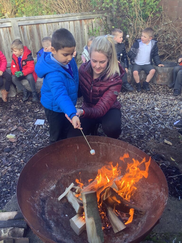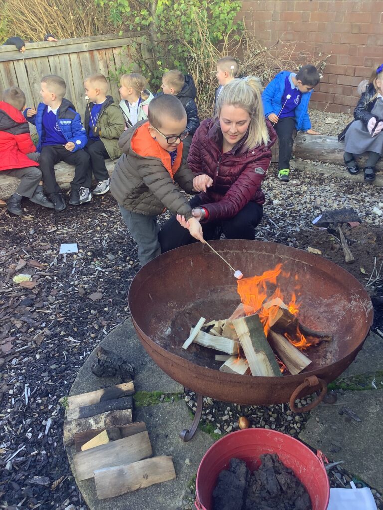 Year 1 have been learning about Bonfire night and its history. We loved listening to and discussing the story of Guy Fawkes. We then talked about the safety of bonfire night and how we are going to keep safe when we are out and about. We then talked about the rules of fire pit safety before we went around the fire pit. Around the fire pit, we discussed bonfire night and Guy Fawkes’ gunpowder plot. We watched Miss Dickinson safely light the fire and we all had a turn at using the flint and steels to make a spark. We took it in turns to safely walk into the fire pit and we toasted a marshmallow. Whilst we ate our marshmallow, we waited for the hot chocolate to heat up and then had a warm drink. Take a look at some of our photos!