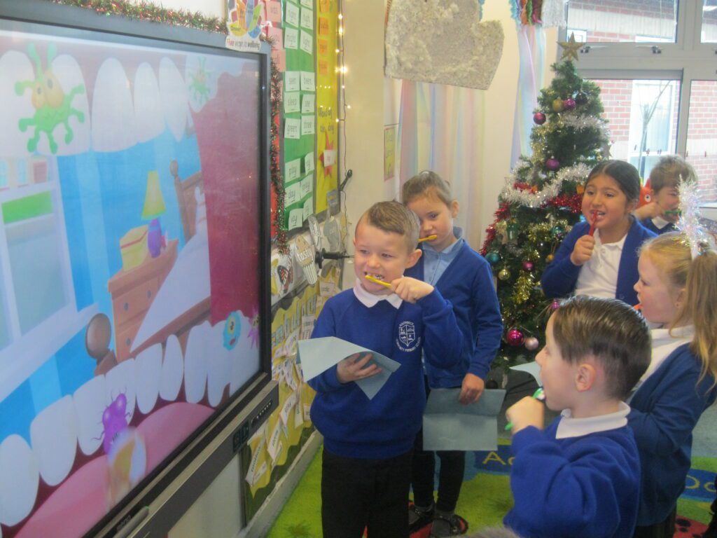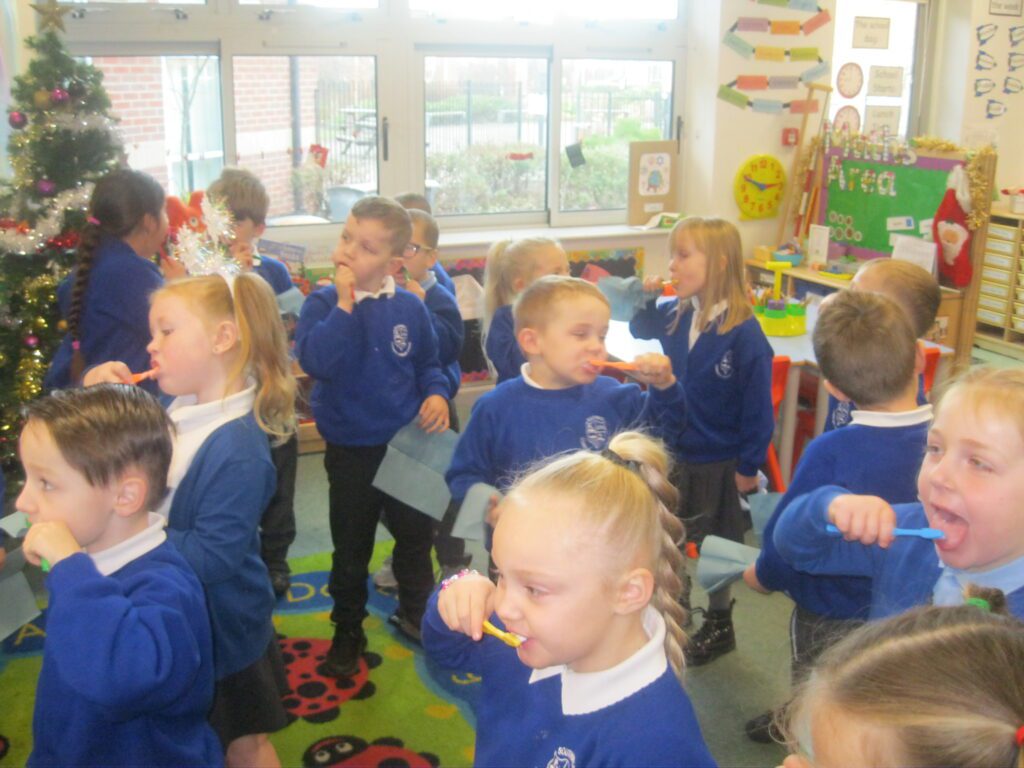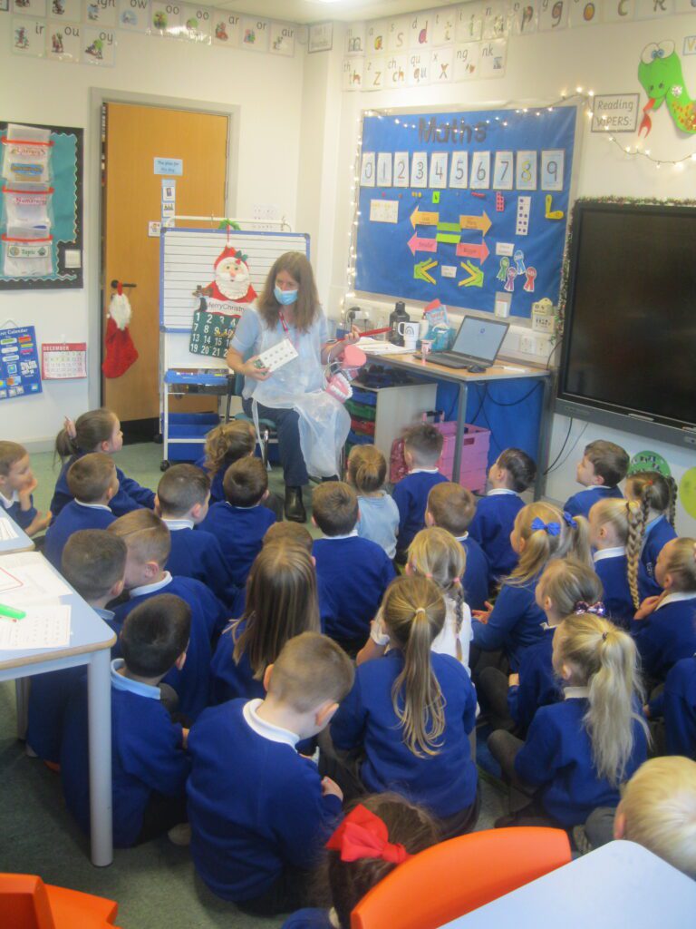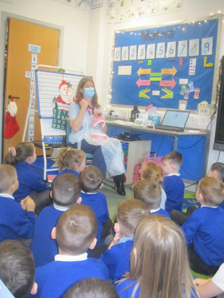 We had a dentist come to speak to us about how important it is to brush your teeth. You have to brush them twice a day, without water and don’t rinse out your mouth! We listened to the dentist and then brushed our teeth. We are going to keep our toothbrushes in our special ‘Tooth Train’ and brush for 2 minutes when we come into school.