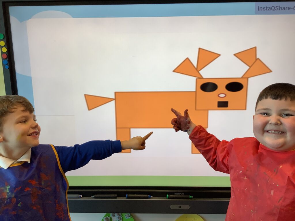In year 1 we have had a fun, informative day all about 2D shapes! To learn the properties of triangles, squares, rectangles, and circles, we have taken part in lots of different activities both inside and outside the classroom. We went on a shape hunt outside, looking at everyday objects which resemble our 2D shapes. Take a look at our art pieces too, where we used block printing to create a dog out of 2D shapes!
