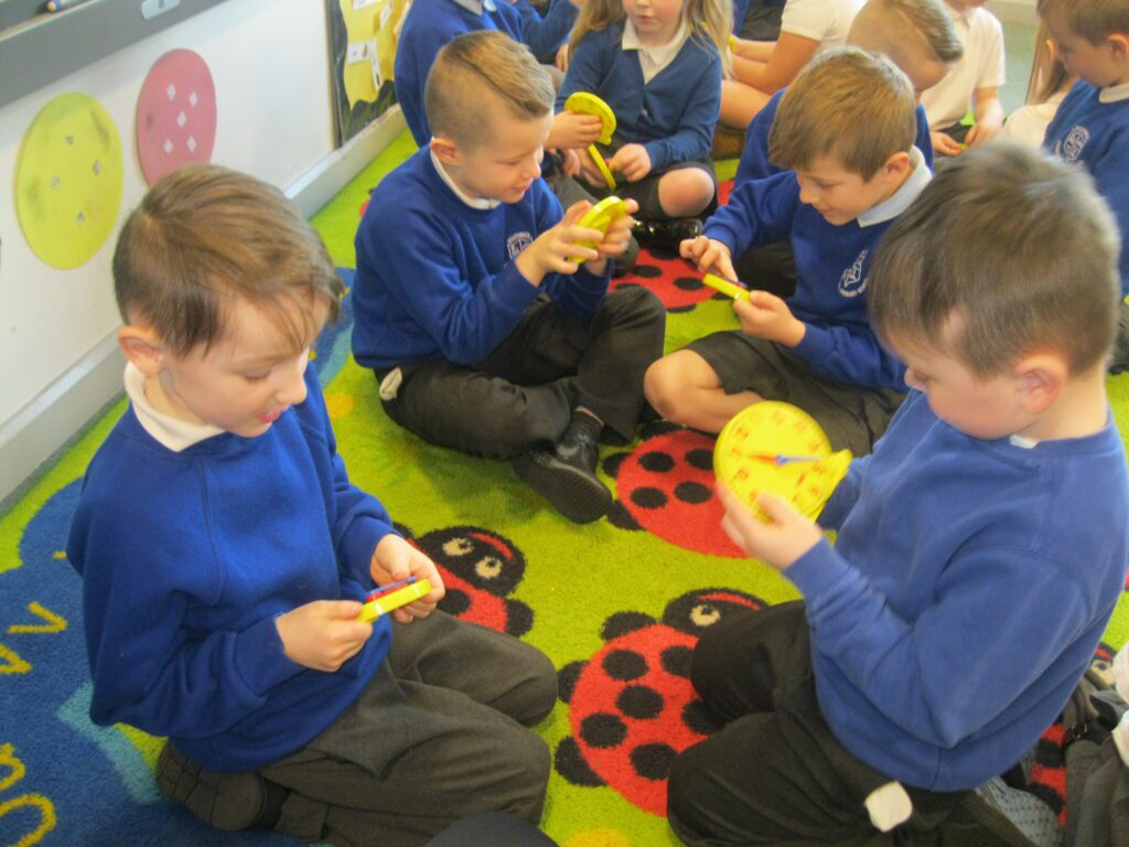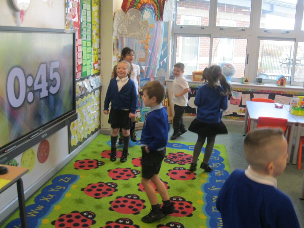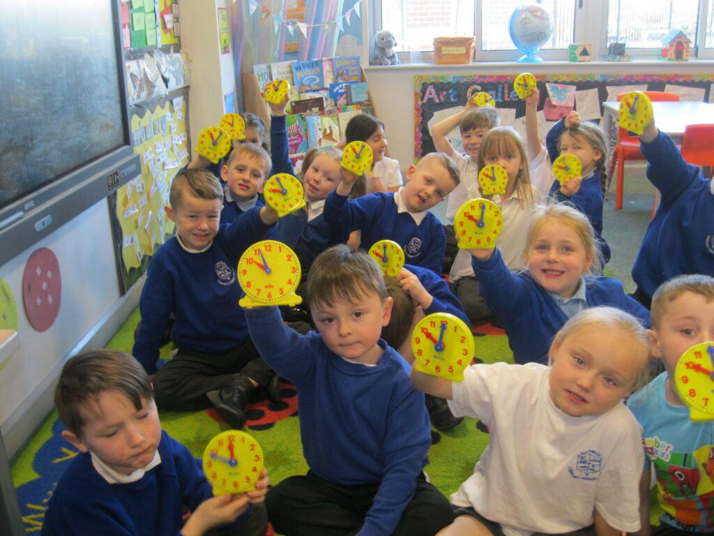 Today we have been taking part in the NSPCC Maths Day. We have been using numbers to learn all about time. We started by completing some different activities for a minute to understand how long a minute is. We chose to jump, hop and do press ups for a whole minute and it was much longer than any of us thought!