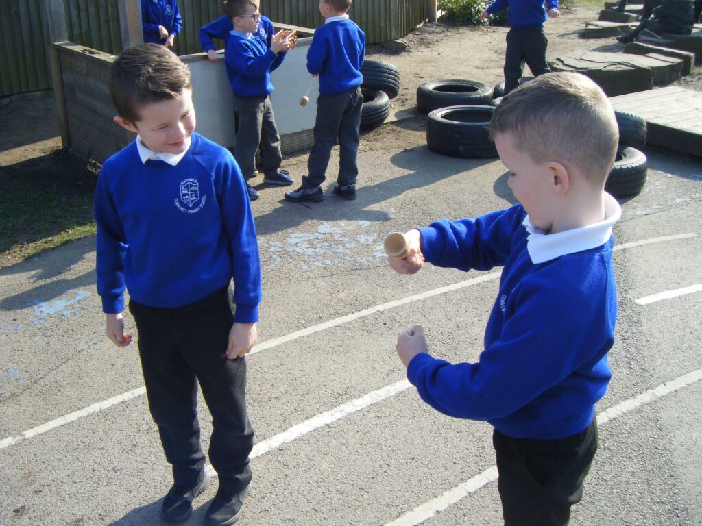 Year 1 joined Mr Woolley from Beamish on Monday afternoon to go searching for some toys. These toys were special because they are what children used in the past. There were no ipads, games consoles or computers! We had a fantastic afternoon playing with ‘cups and balls,’ flick books, Pick Up Sticks and marbles. Here are some of our photos.