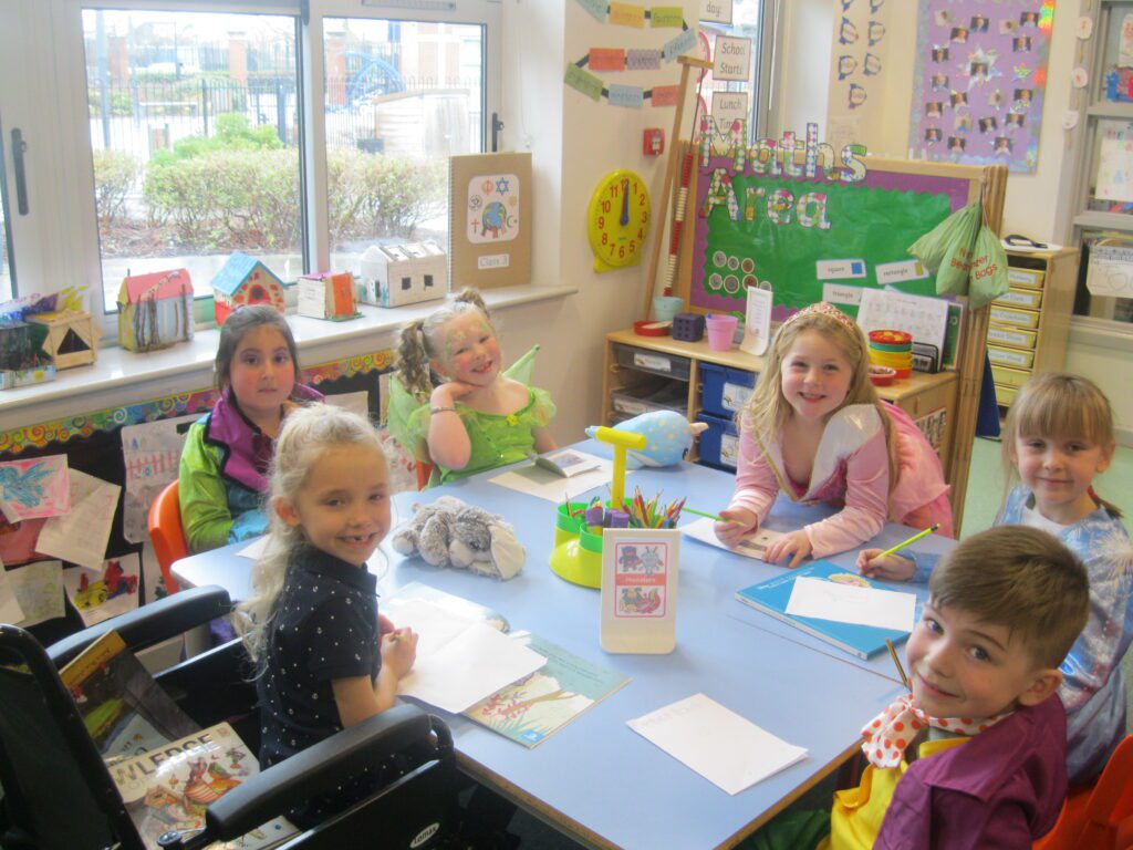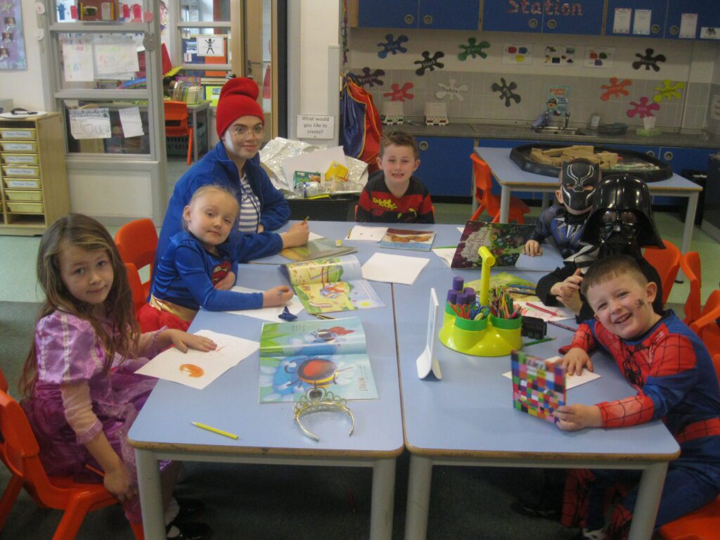 Class 4 have been very busy today. We have shown off our costumes from our favourite stories, shared some of our most loved books, worked together to create our very own story and then created a group story map. We even had a visit from year 6 and enjoyed listening to them reading us stories. Take a look at our amazing pictures!!