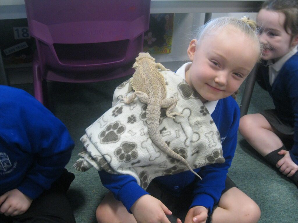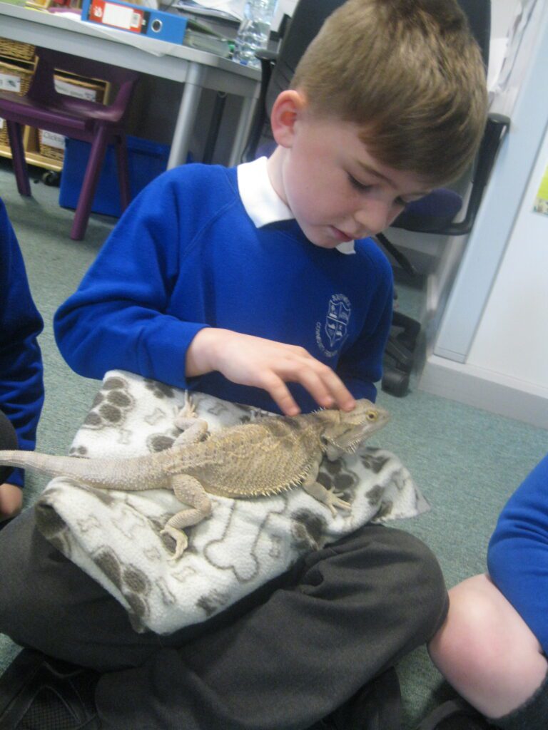 We had some special visitors in Year `1 on Thursday – we were lucky enough to have Angela bring some wonderful animals for us to hold and look at. There were geckos, bearded dragons and skinny pigs! We learnt about where they live and what they like to eat in their habitat. Here are some of the photos from the visit.