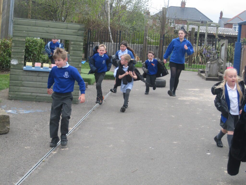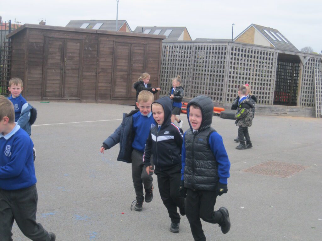 This week, it is the tenth birthday of the daily mile! We have a track around the yard where children can run a mile to keep fit and healthy whilst counting lots of steps. Year 1 celebrated the mile’s tenth birthday by running, skipping, hopping and walking a mile around the playground. Well done everyone!