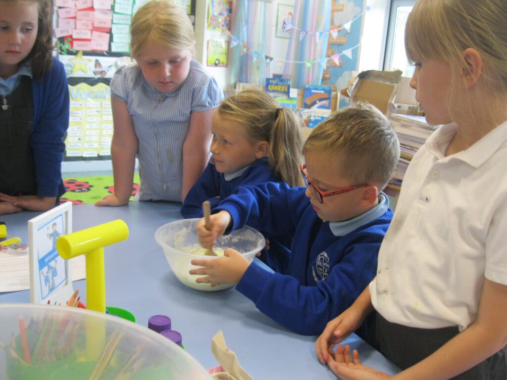 As part of our Hinduism studies, we learnt about the different gods that Hindus can pray to. We discussed how they make an offering using sweets or home made bakes so we made our own to try. Here are some of our photos.